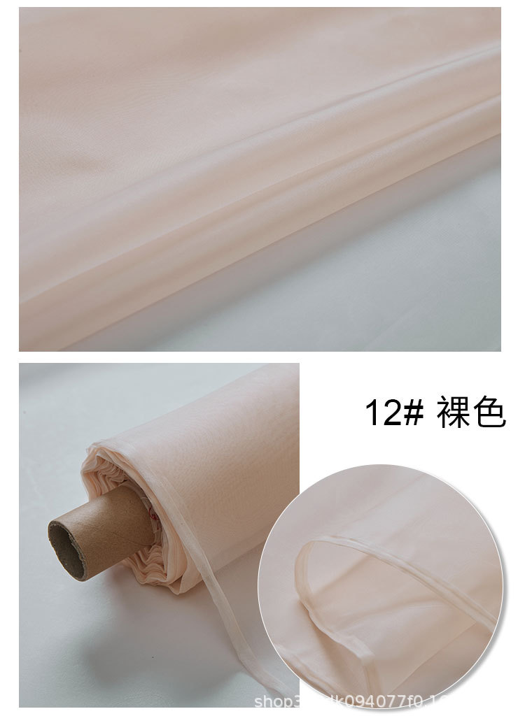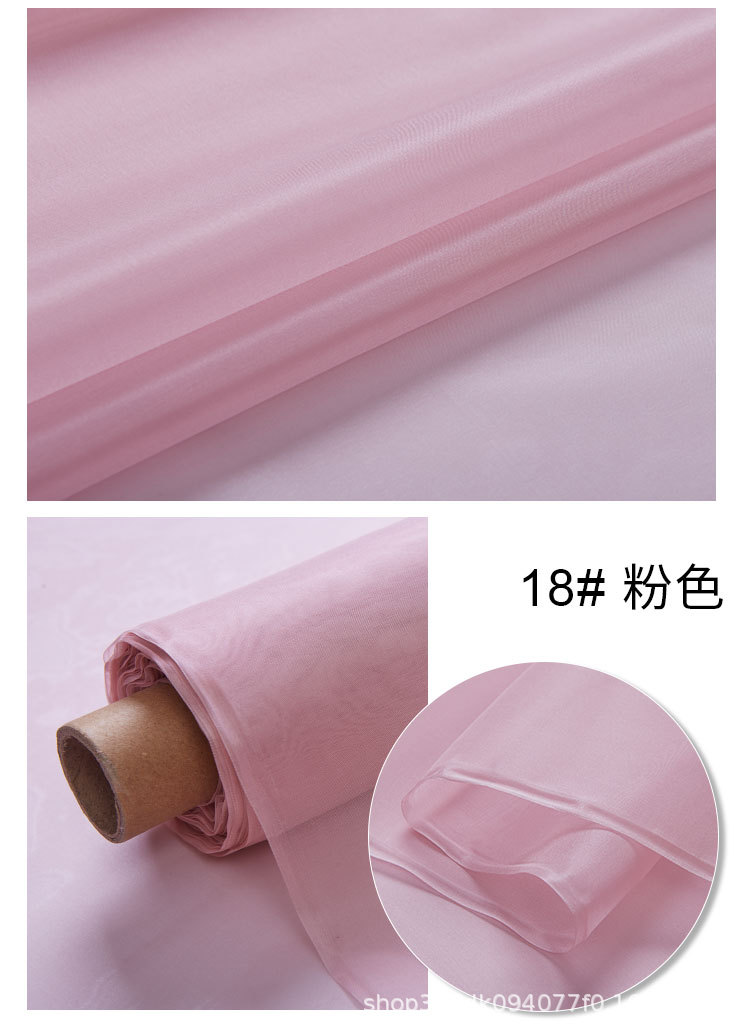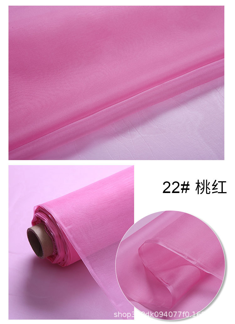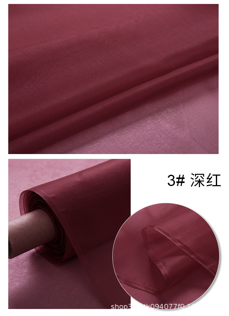 Оптовая широкая органза из шелка однотонного цвета, жесткая пряжа для платья Ханьфу, шелковая ткань