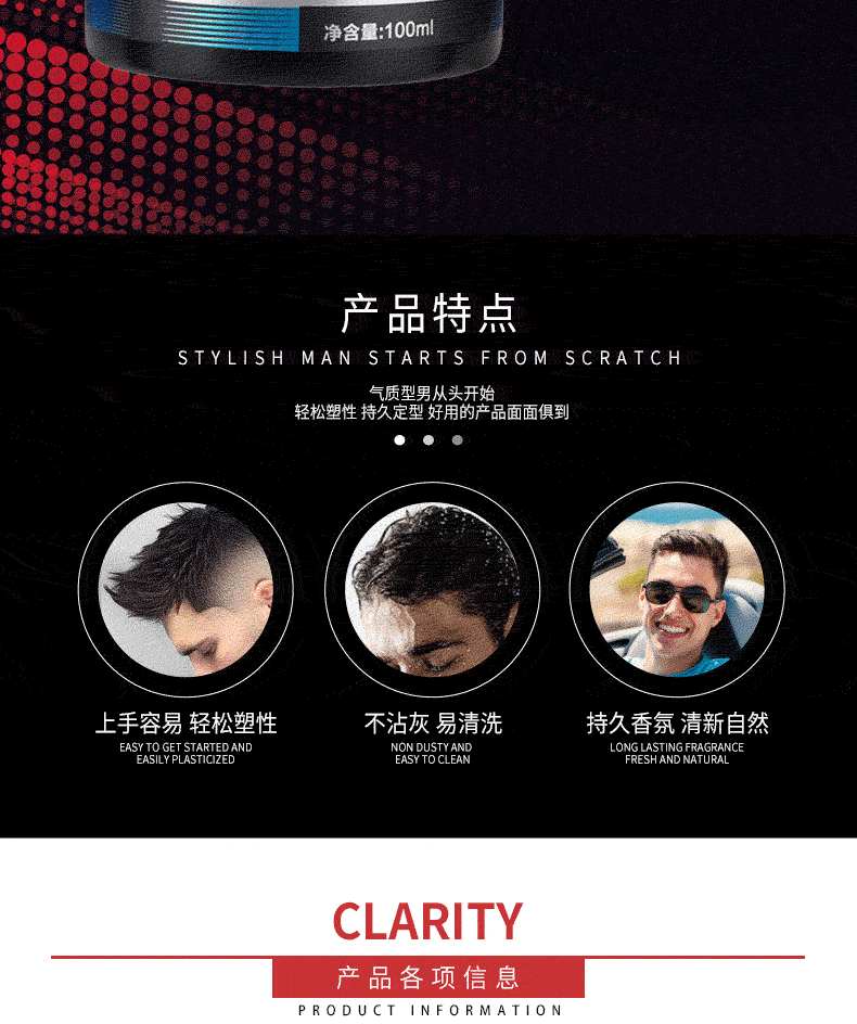 Номер товара Cool Hair Varied Men's Style Black Bottle Hair Mud