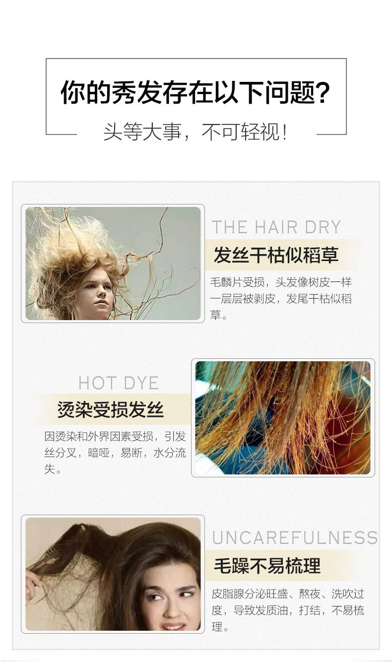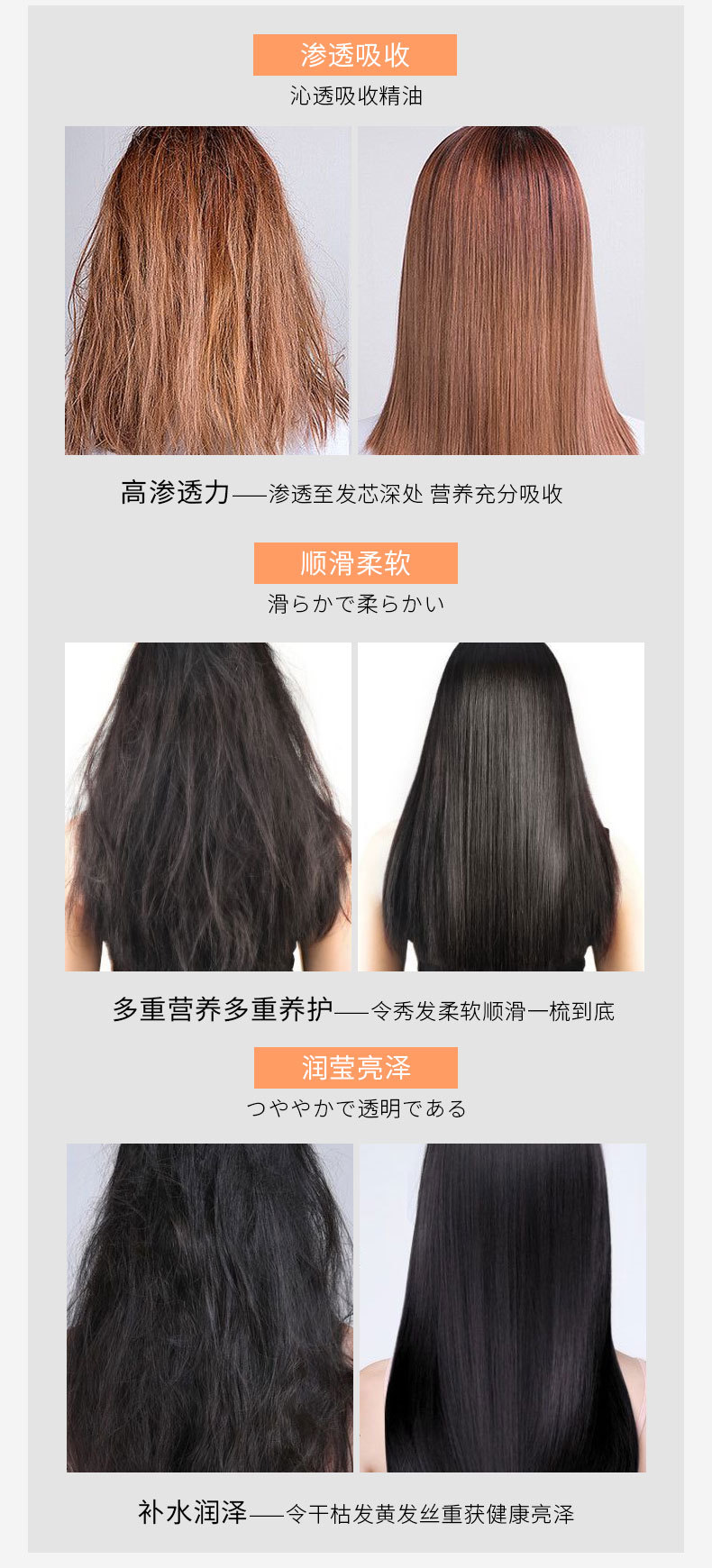 Эффективность Moisturizing nutrition, Improve frizz, Compliant, Dense and Fluffy