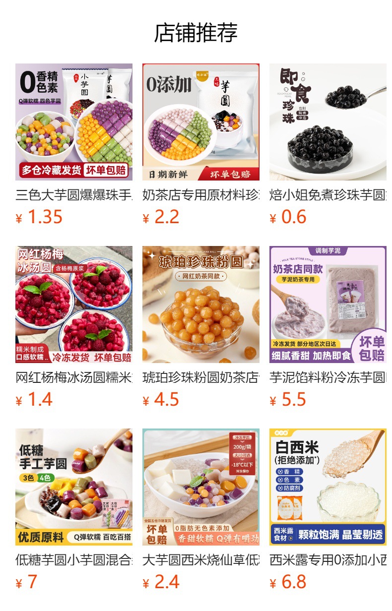 ![]() | Four-flavor large taro balls 500g (potatoes, taro, purple sweet potato, matcha) | ¥5.8 / ≈ 70 ₽ | 25054 | 5048356597010 | |