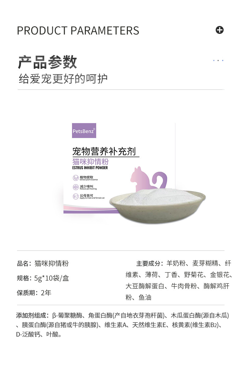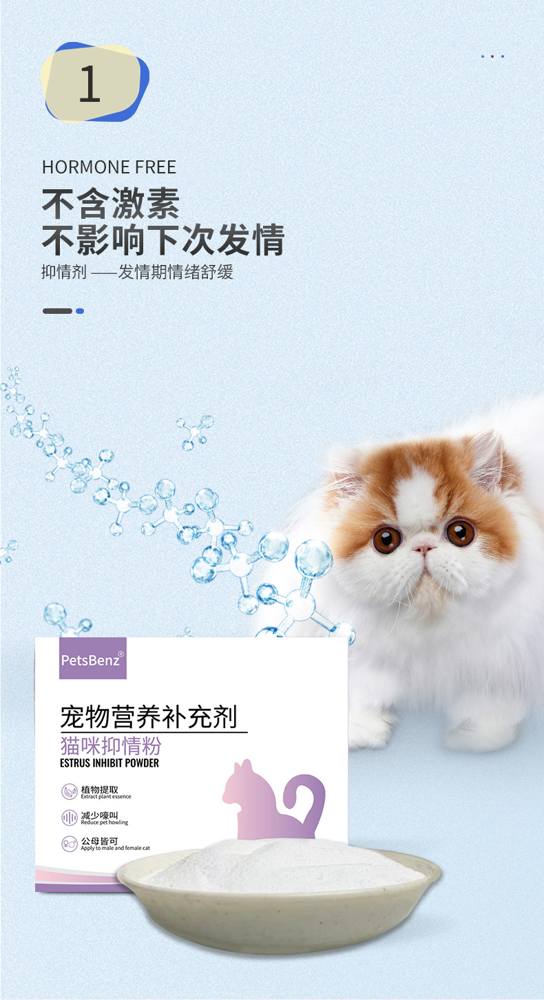 Порошок PetsBenz для кошек против эструса 5г * 10 пакетов, успокаивающий для самок и самцов, без жидкости эструса