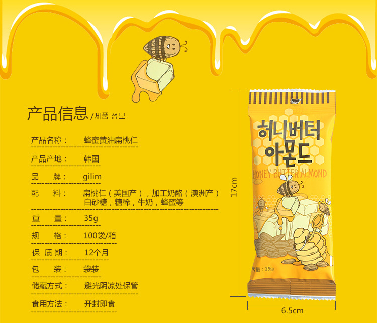 Импортированный корейский миндаль с медом и маслом Бафен оптовая упаковка