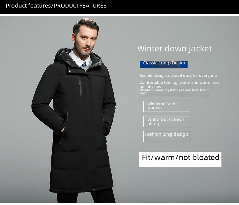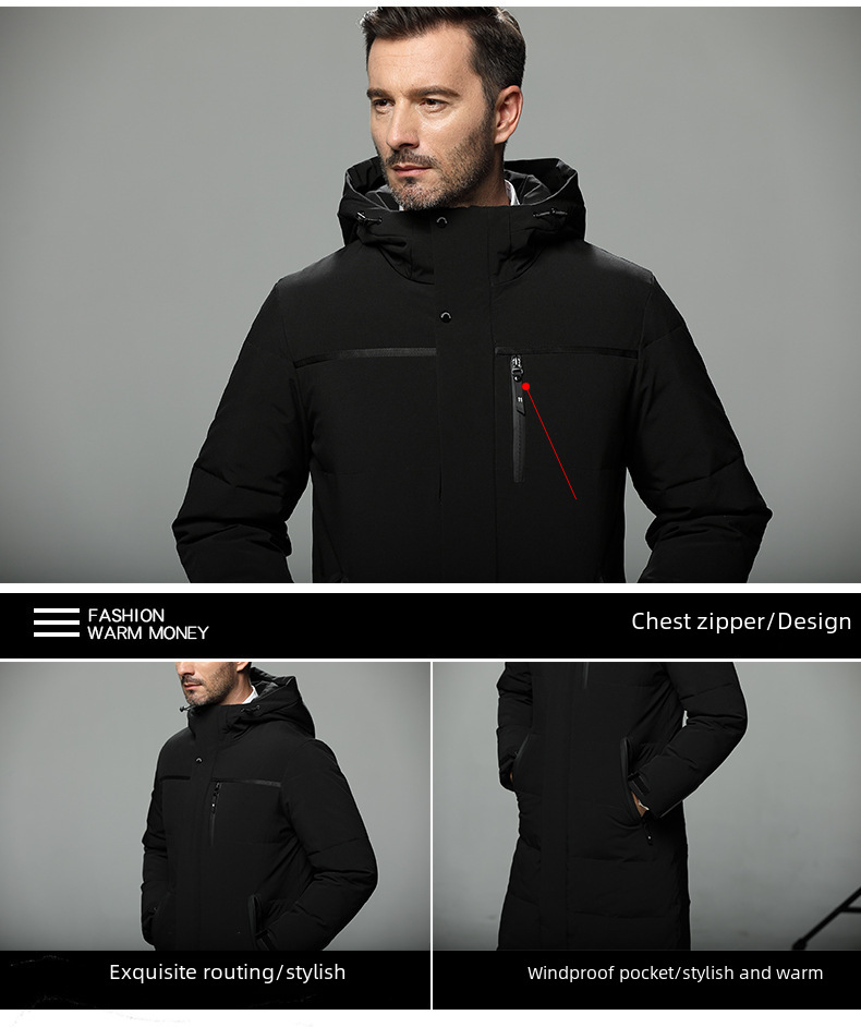 2025 новая зимняя одежда для мужчин среднего и пожилого возраста, длинная куртка из пуха, утолщенная, большого размера, экспортная зимняя одежда
