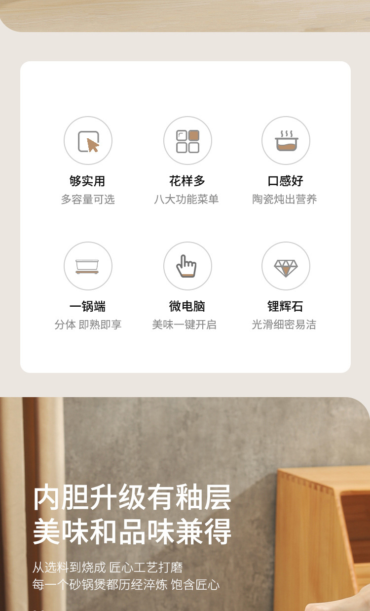 Керамическая электрическая кастрюля для тушения Многофункциональная полностью автоматическая бытовая электрическая кастрюля Встраиваемая маленькая кастрюля для супа