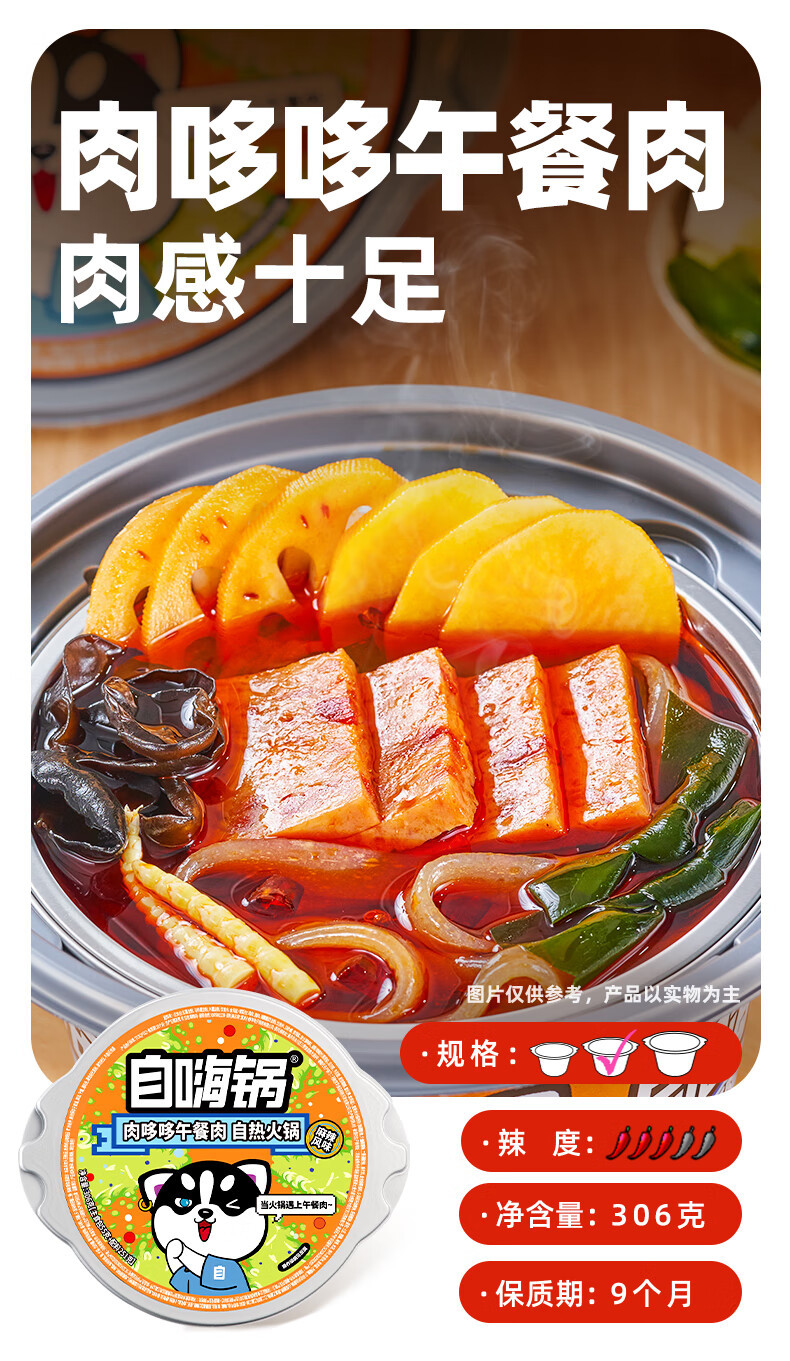 ![]() | Zihai pot [mork duoduo luncheon meat] spicy style self-heating hot pot 306g (single box) | ¥13.59 / ≈ 164 ₽ | 0 | 5528835470897 | |