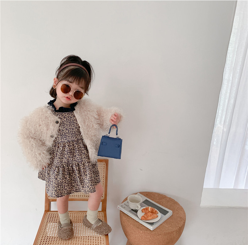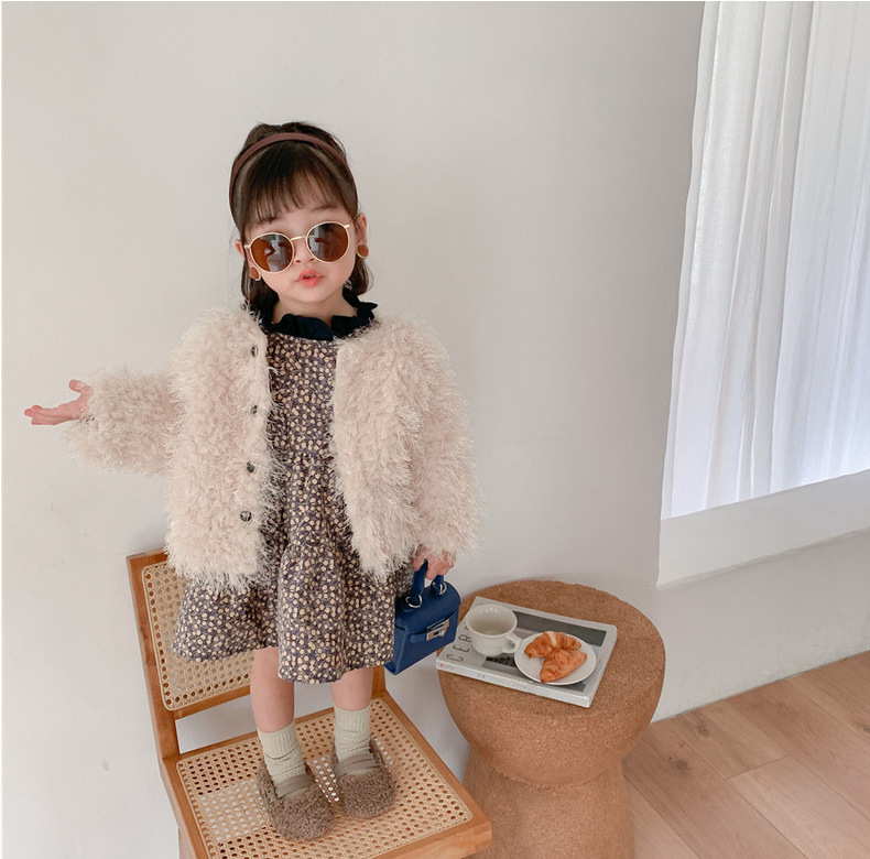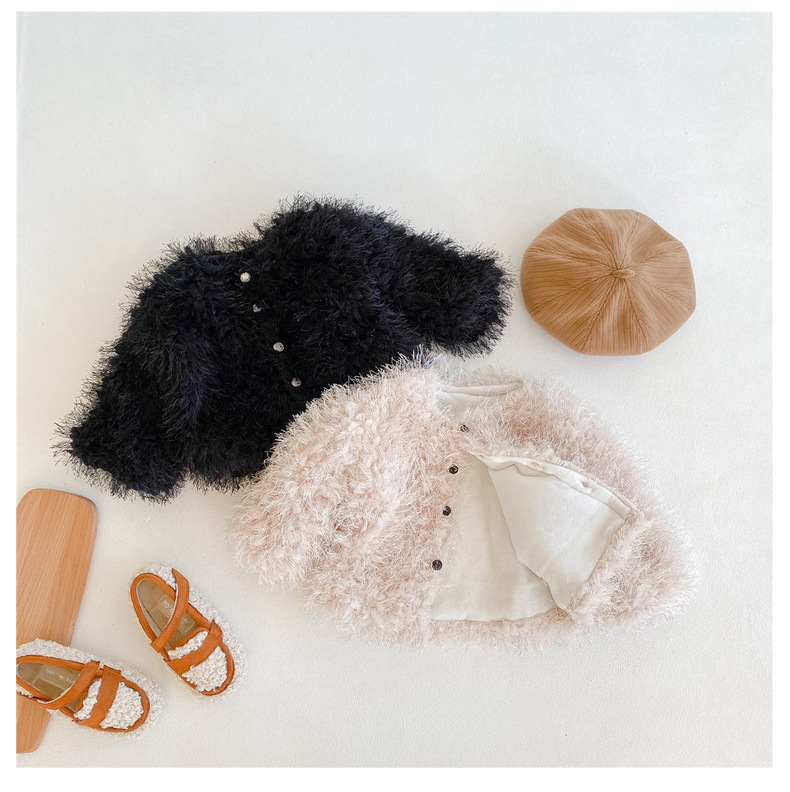 Детское шершащее пальто в западном стиле 2023, корейская стильная одежда для девочек, легкое роскошное короткое пальто с мехом, модный кардиган