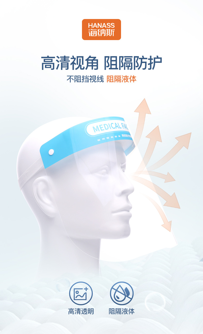 Медицинская изоляционная маска Hainas, пылезащитная, противокапельная, антисброс, большой экран, прозрачный щит для лица