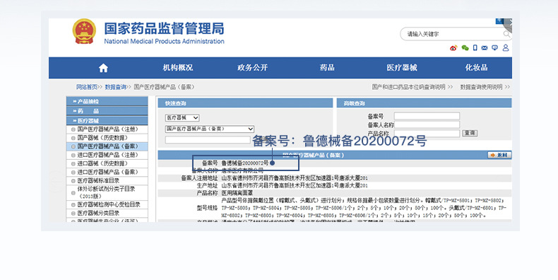 Классификация продукта Medical isolation mask