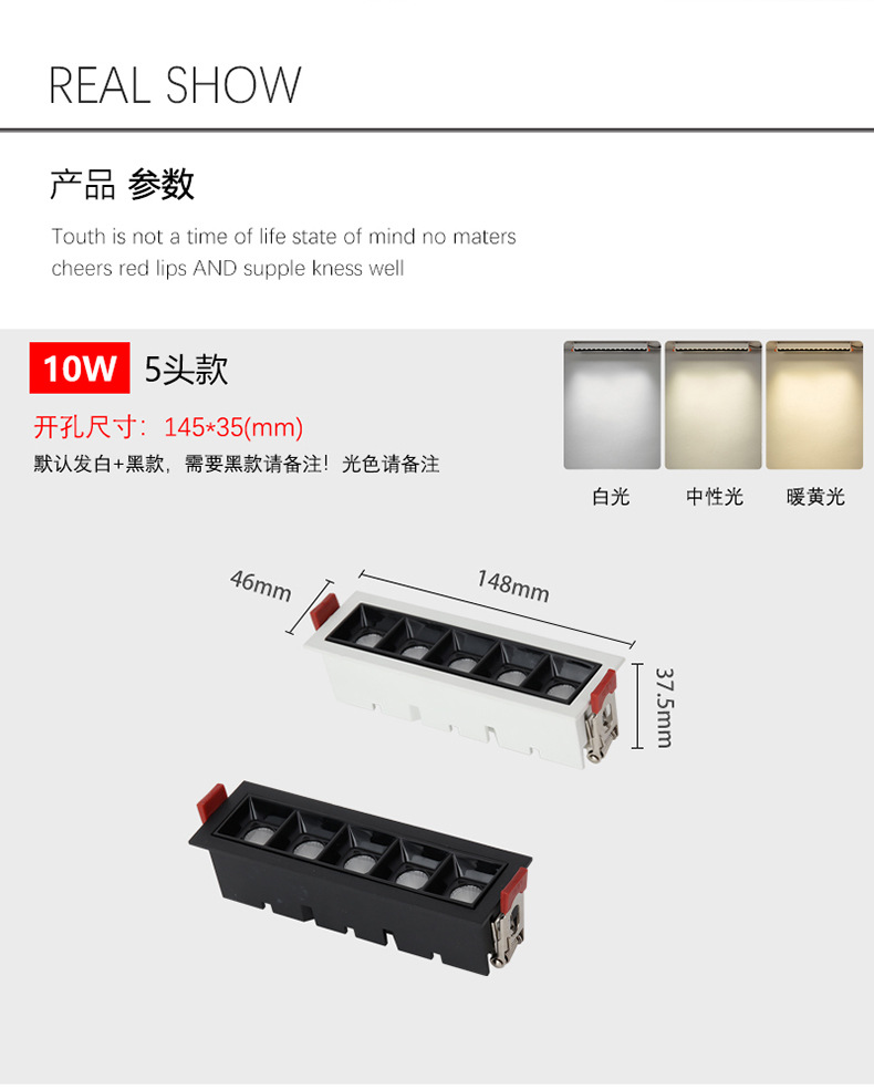 📦 | High-end configuration (warm white 3500K) | White 5 head 10W (opening 145*35MM) | ¥50.96 / ≈ 615 ₽ | 5632 | 4913590434264 | |