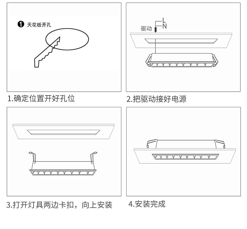 📦 | Mid-range configuration (neutral light 4000K) | White 15 head 30W (opening 410*35MM) | ¥73.5 / ≈ 887 ₽ | 7428 | 4913590434274 | |