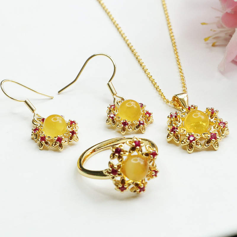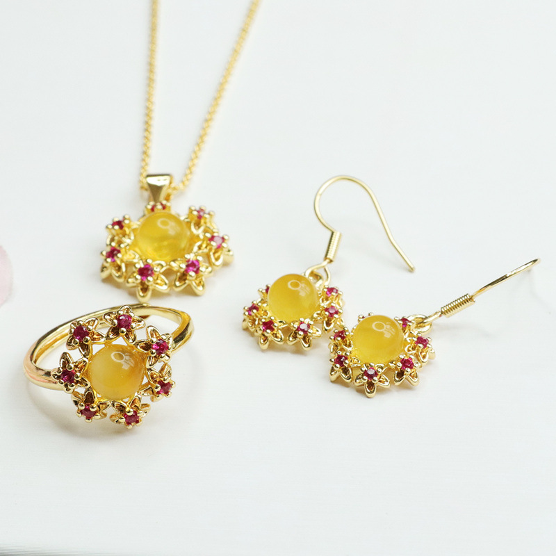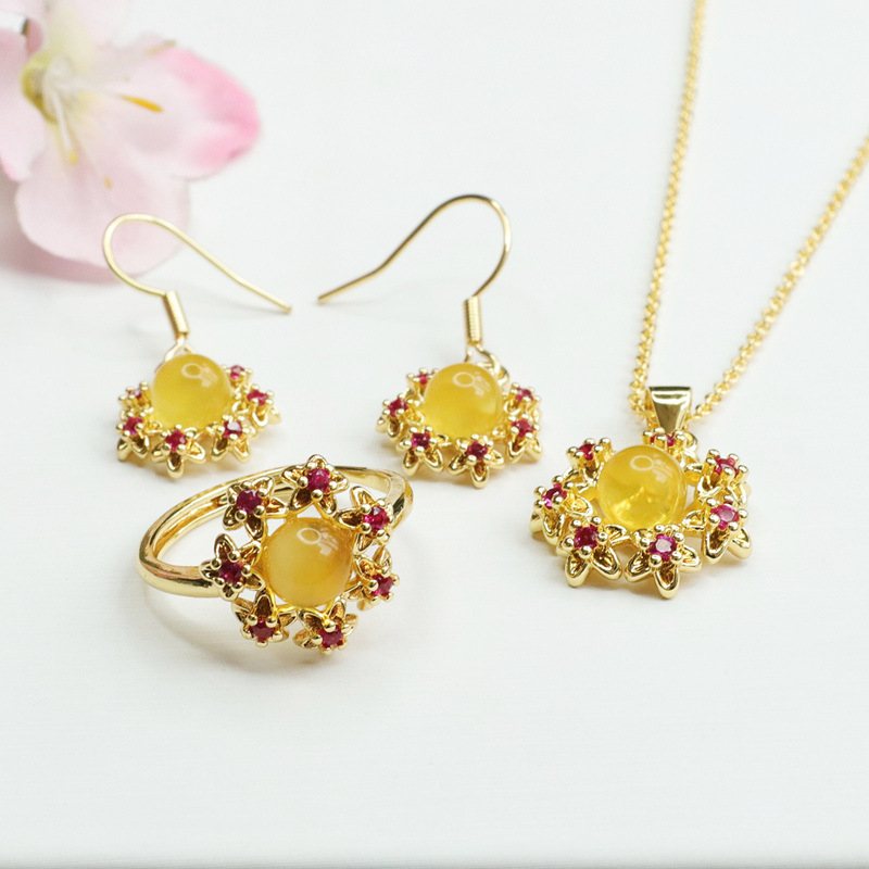 Комплект из натурального янтаря и пчелиного воска Гуань Юй: подвеска, серьги, кольцо, прямая доставка с завода S1122717