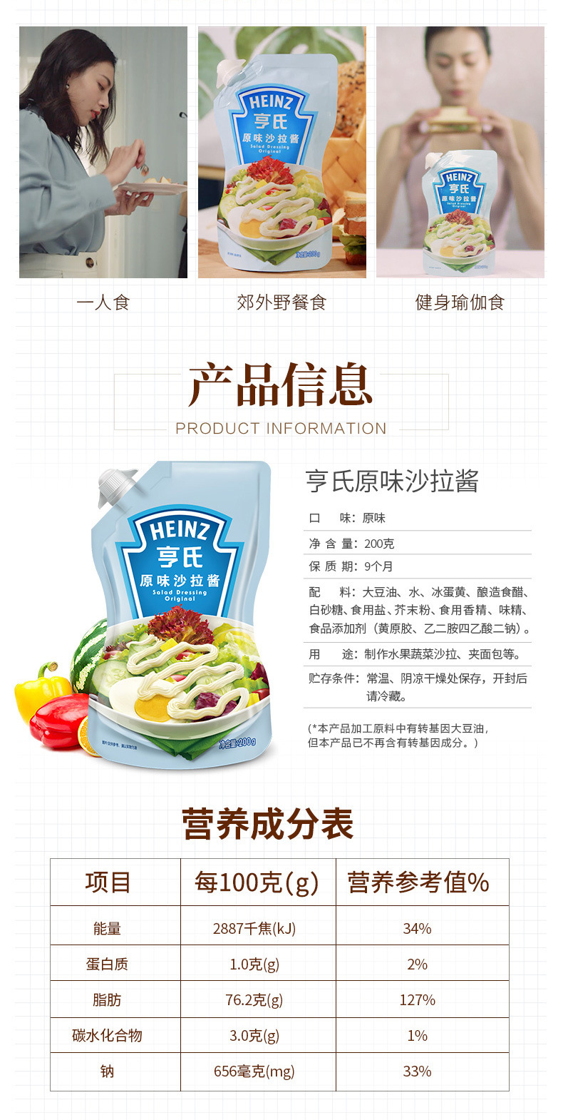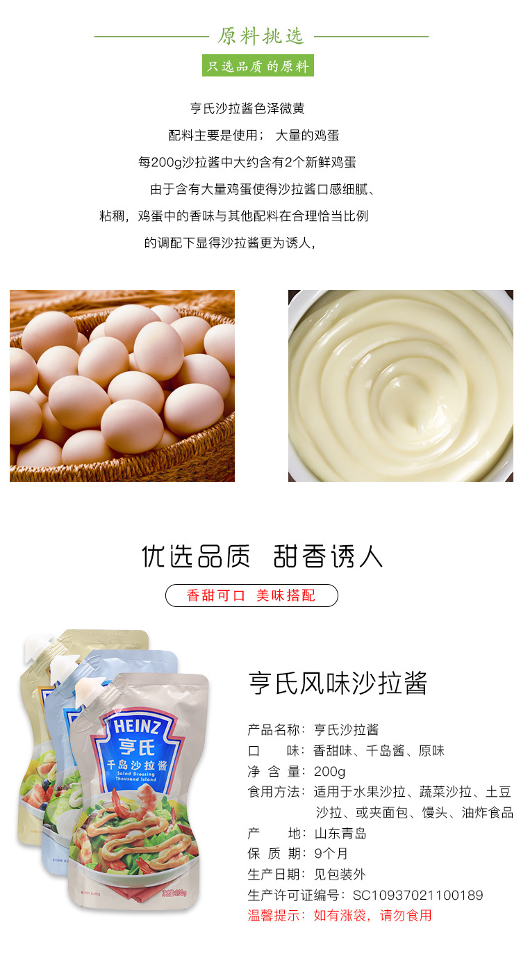 ![]() | Heinz [xiao qingchun] salad dressing 175g (single bag) | ¥8.99 / ≈ 109 ₽ | 139 | 4952845290739 | |