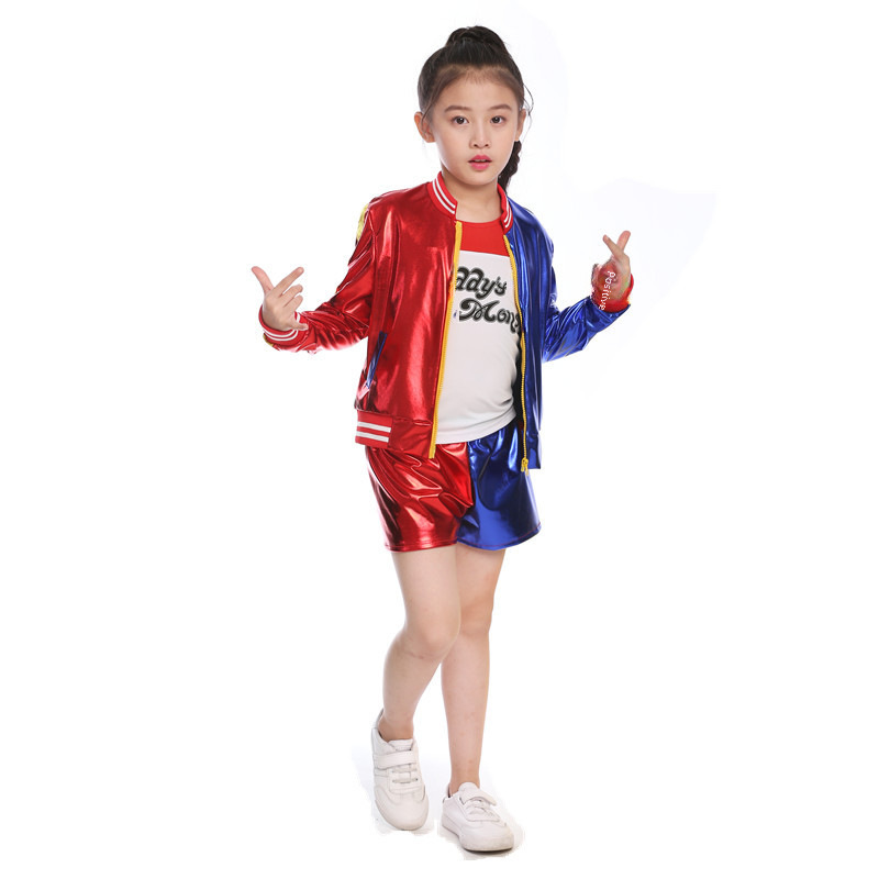 Косплей одежда для детей, клоунесса Харли Квинн из Отряда самоубийц, полный комплект с принтом
