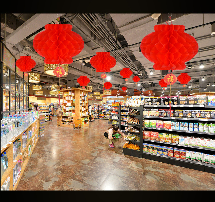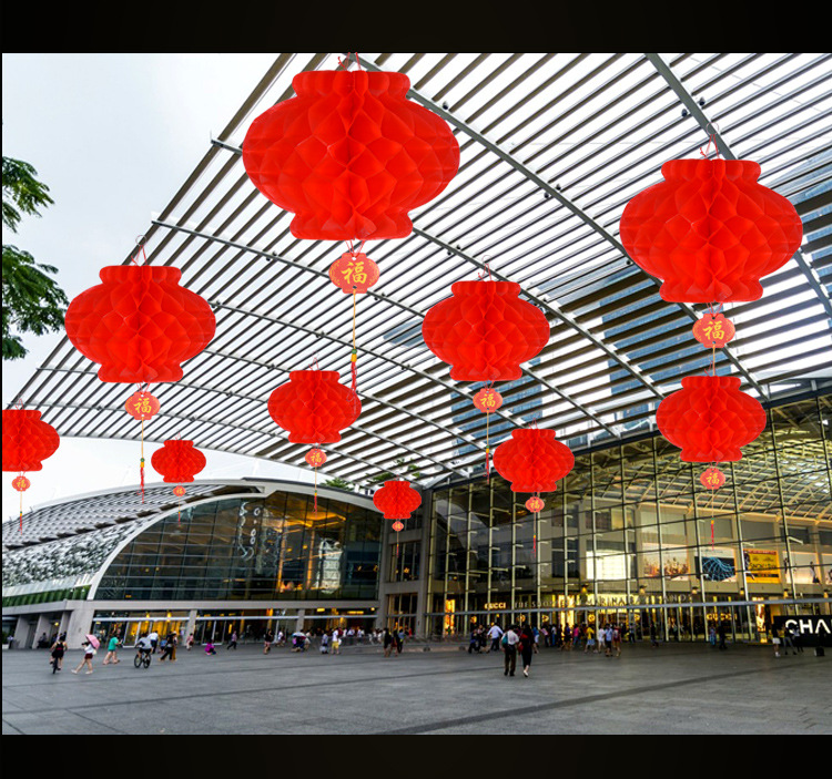 Красный праздничный бумажный фонарь в форме сот, маленький фонарь для подвешивания, украшения для открытия торгового центра