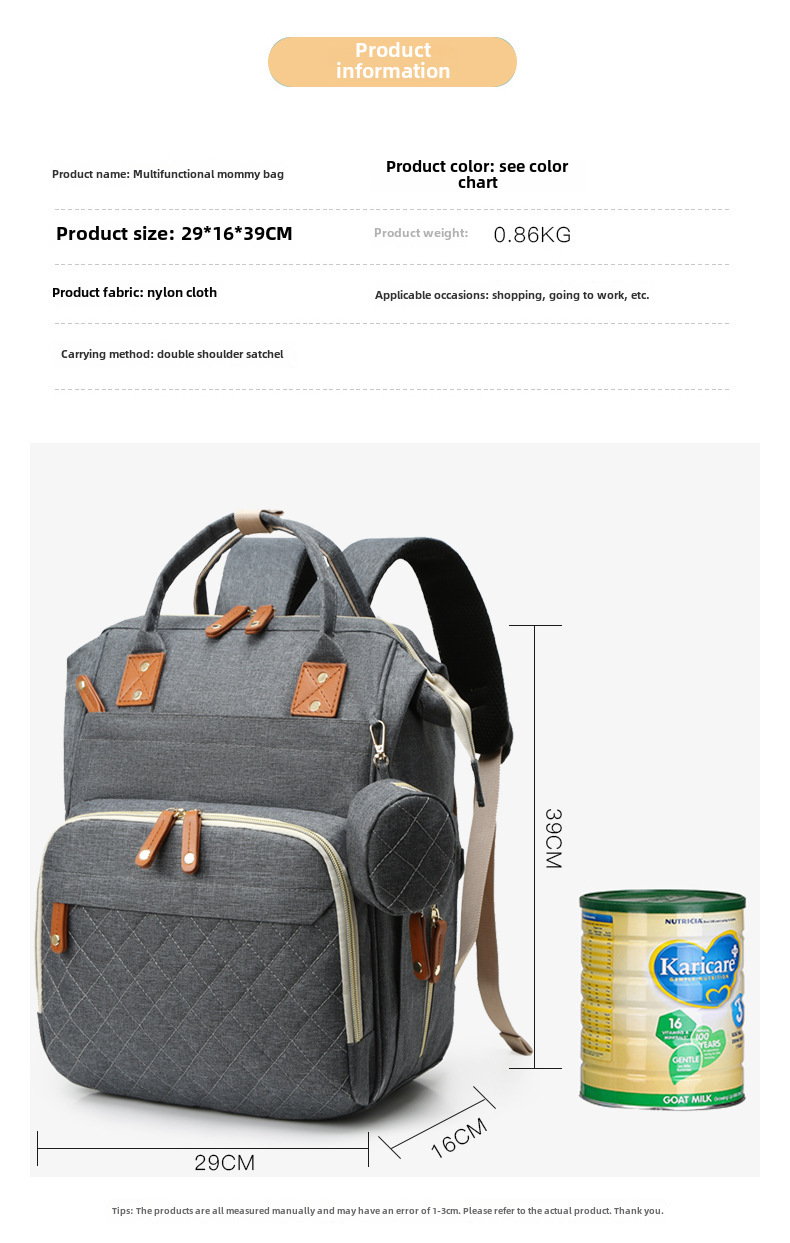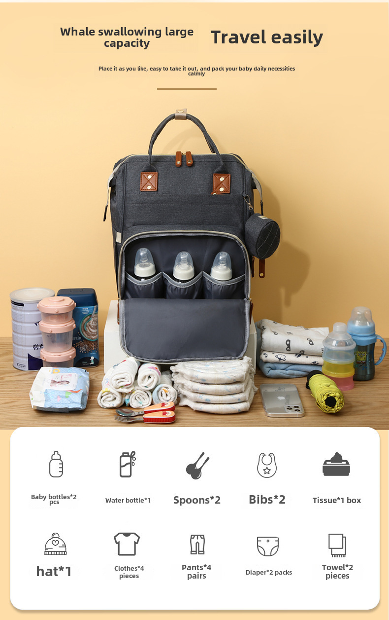 - Multi-Layer Design:The bag features a multi-layer design, providing separate compartments for diapers, bottles, and other essentials. This helps in keeping things organized and easy to access.