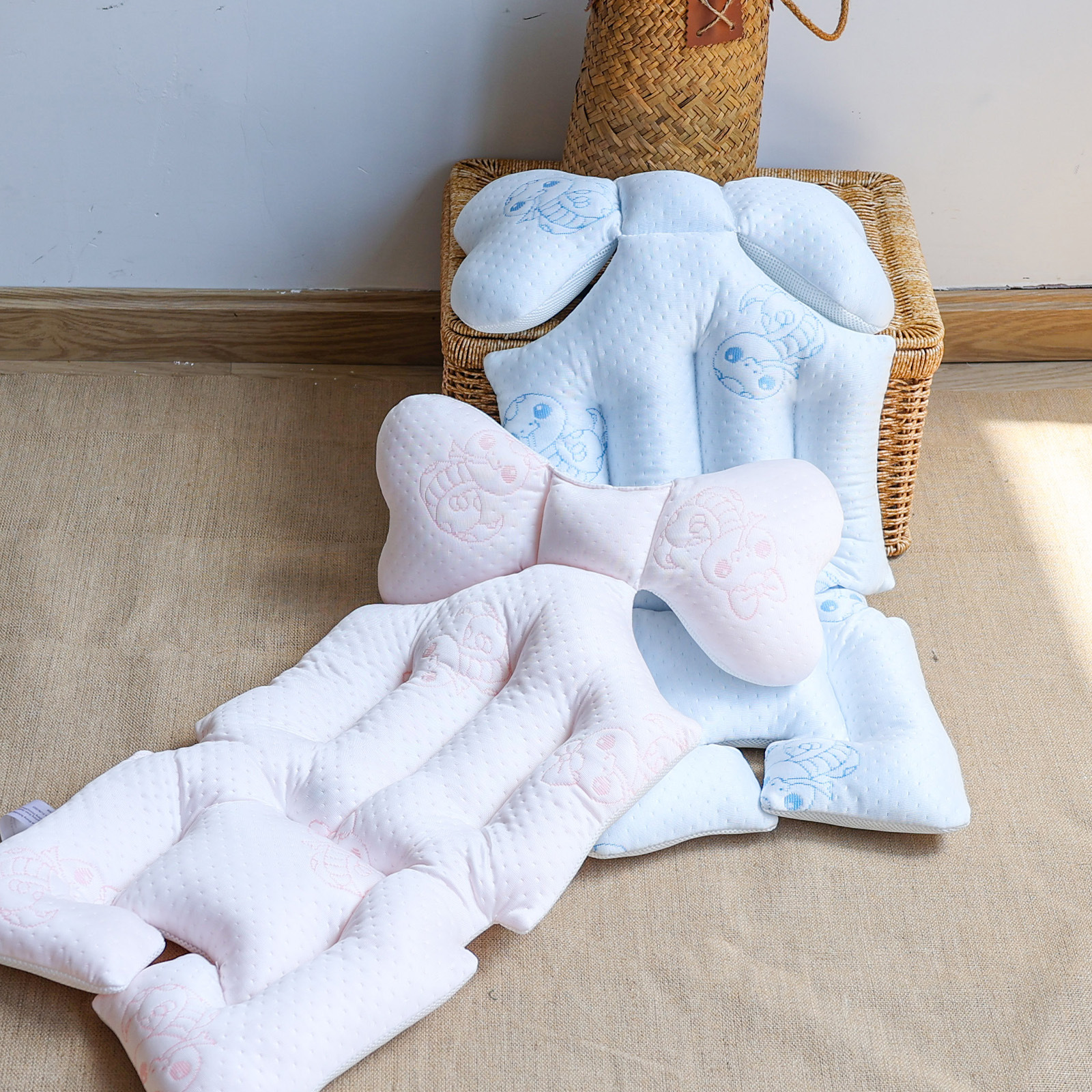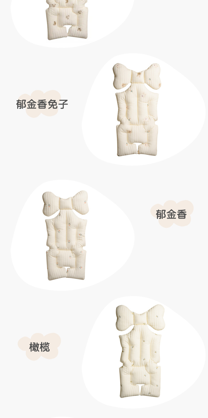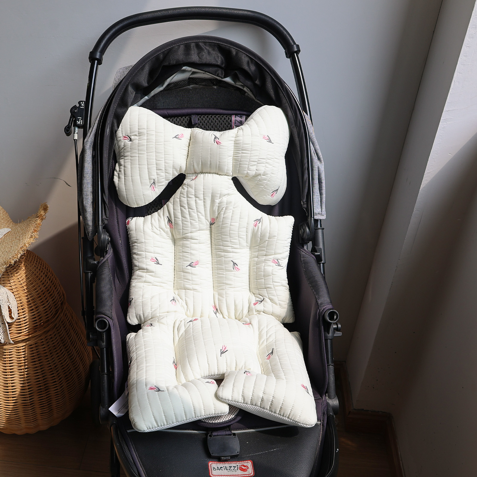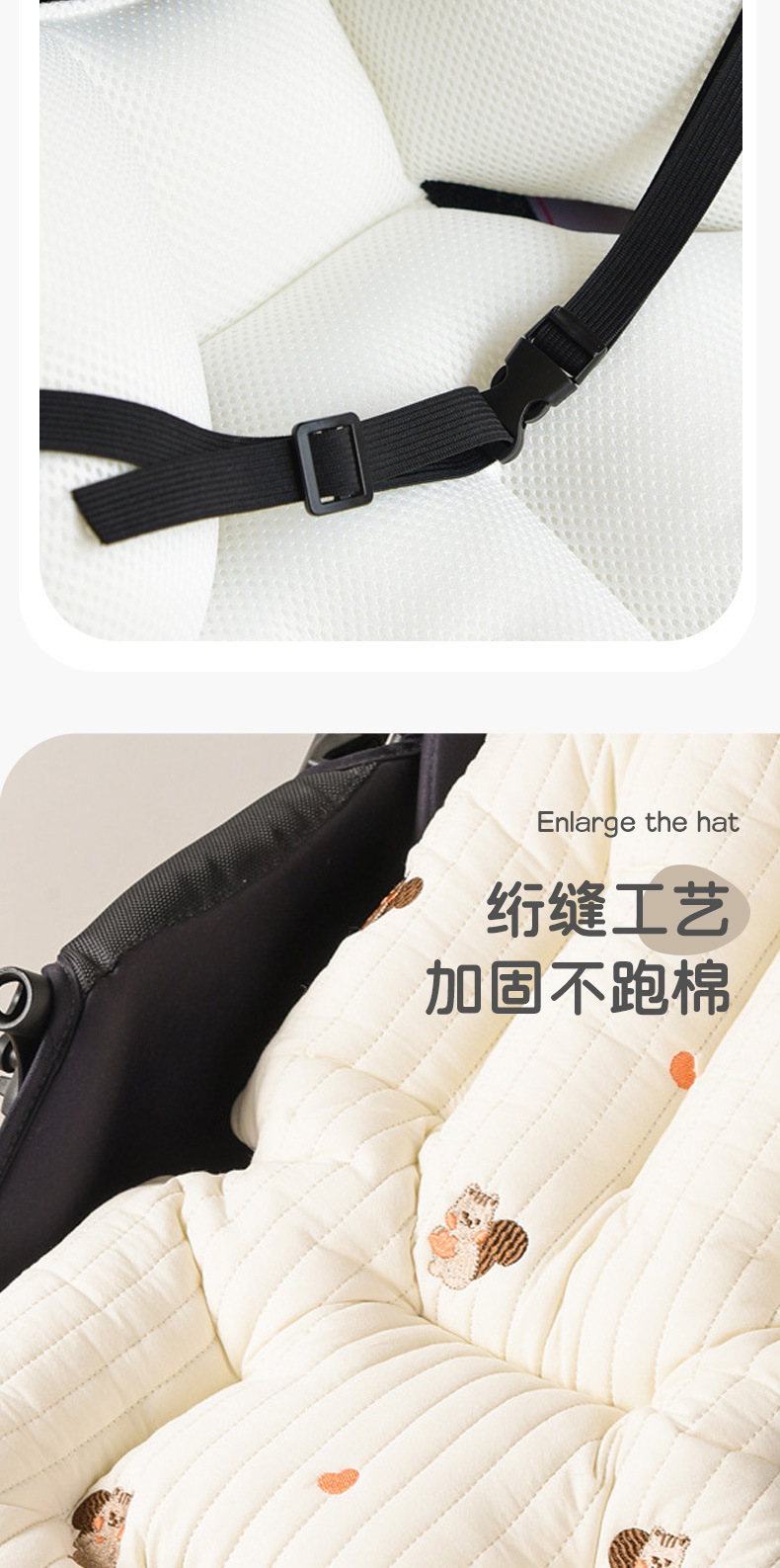 韩国婴儿推车坐垫防驼背宝宝秋冬加厚刺绣棉垫四季通用