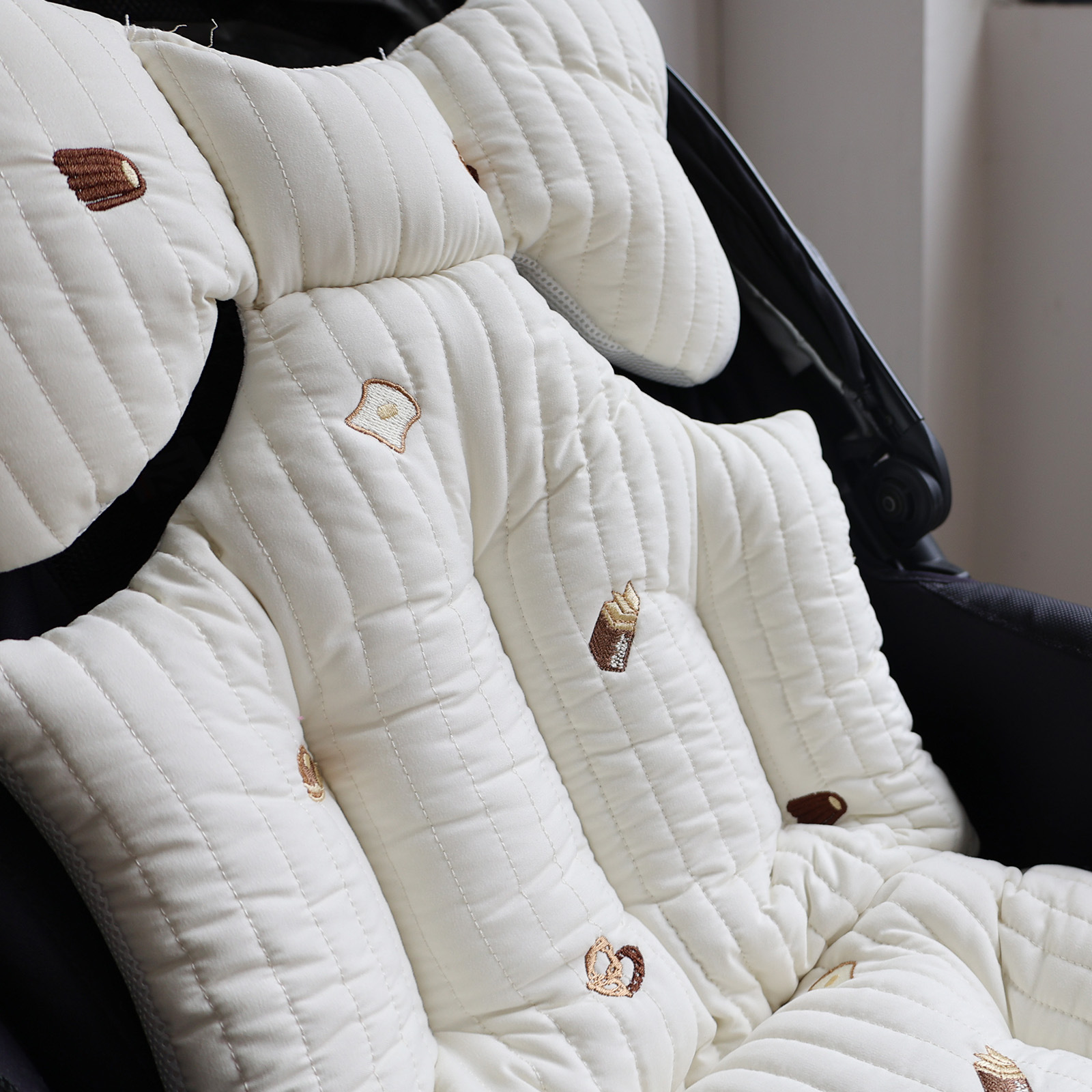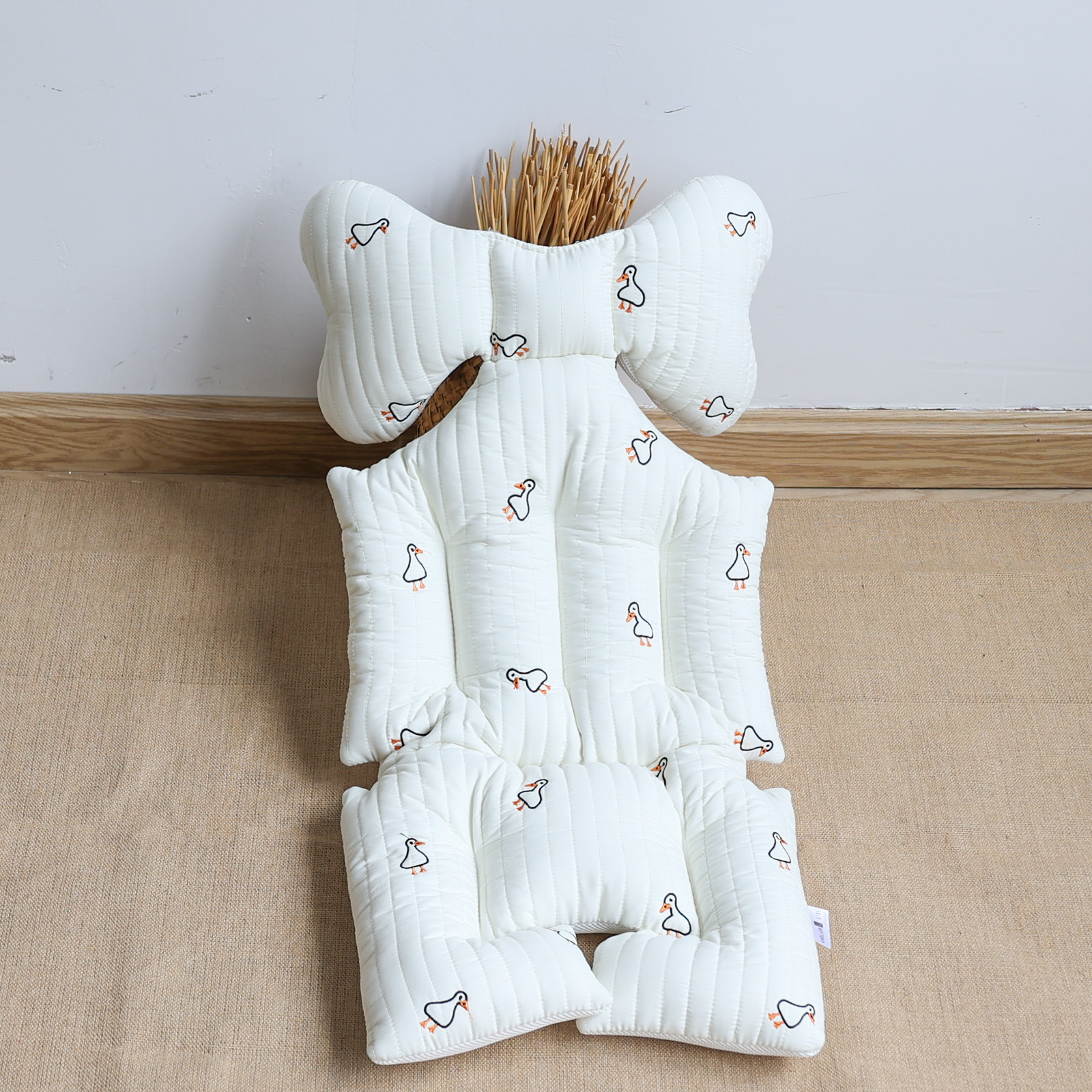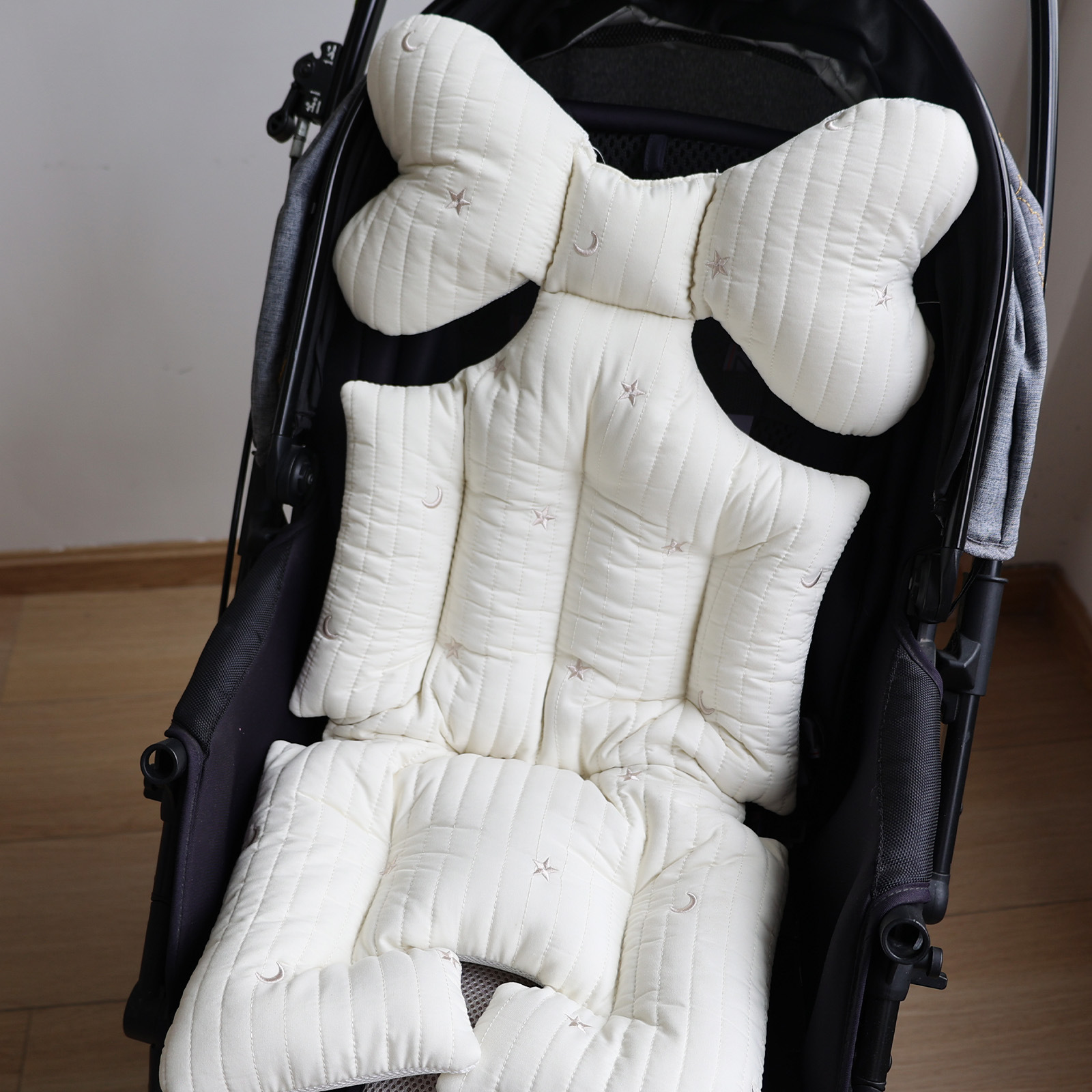 韩国婴儿推车坐垫防驼背宝宝秋冬加厚刺绣棉垫四季通用
