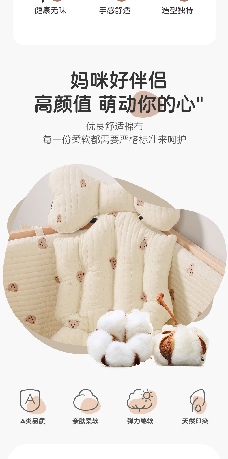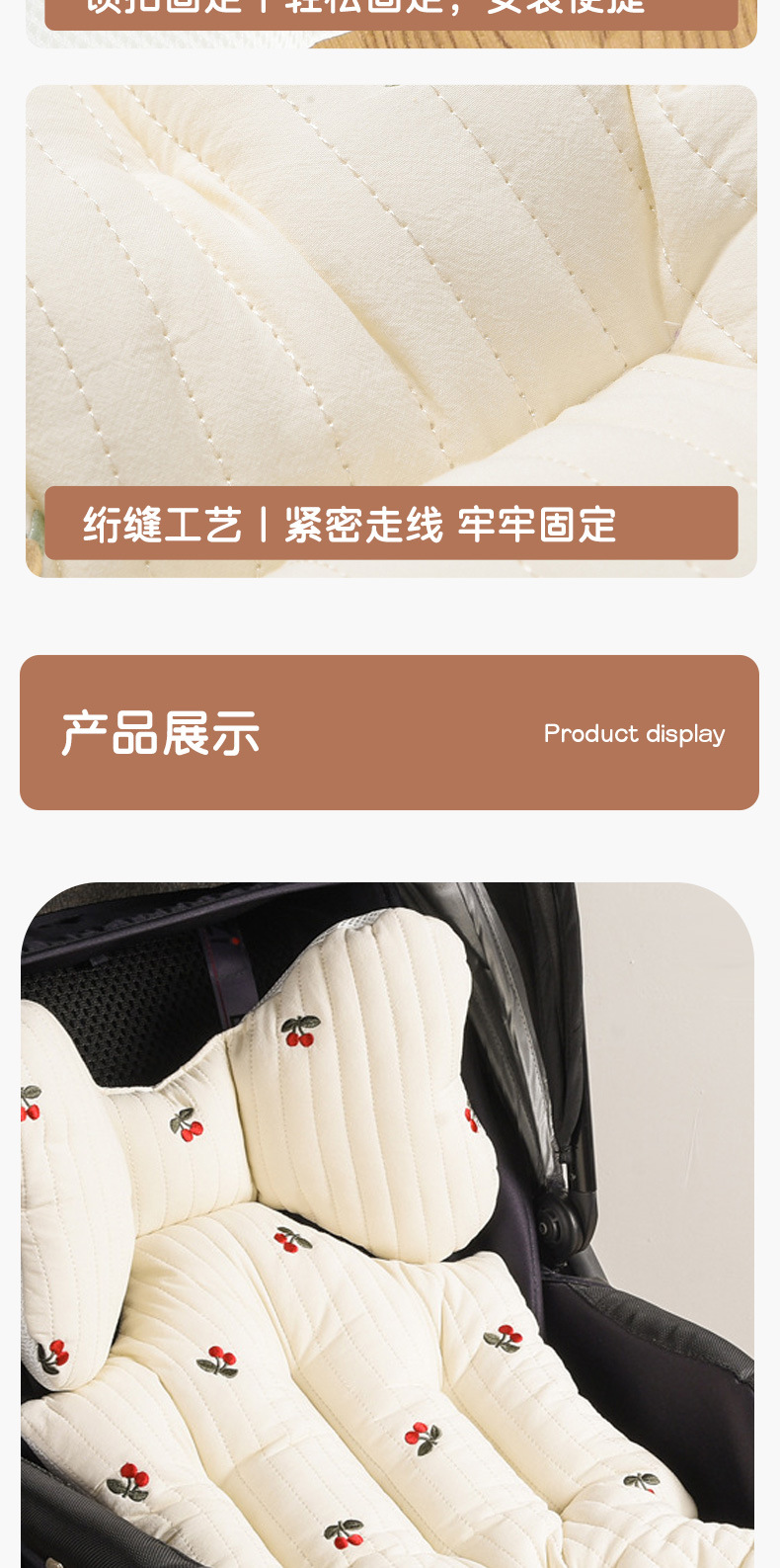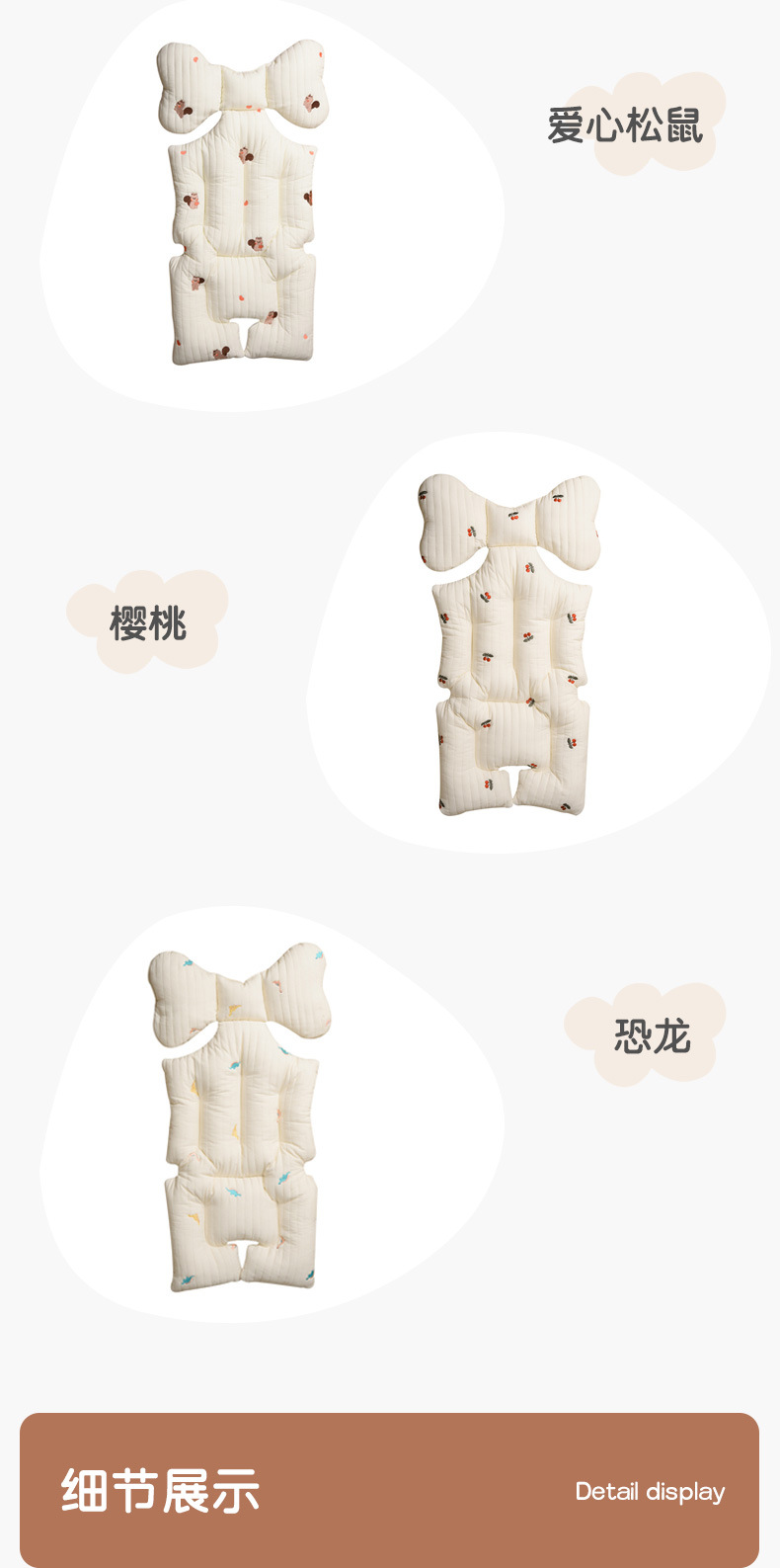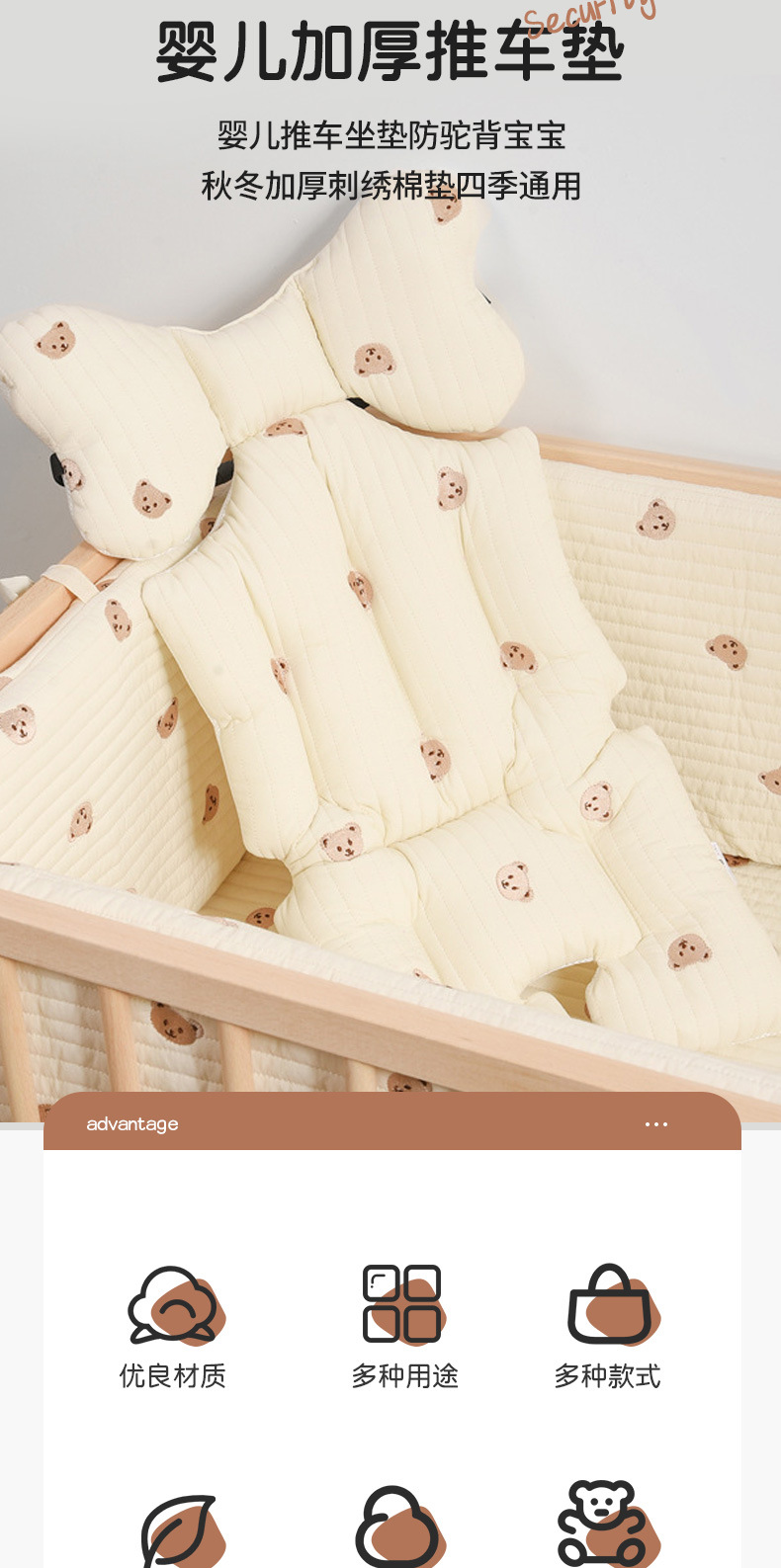 韩国婴儿推车坐垫防驼背宝宝秋冬加厚刺绣棉垫四季通用