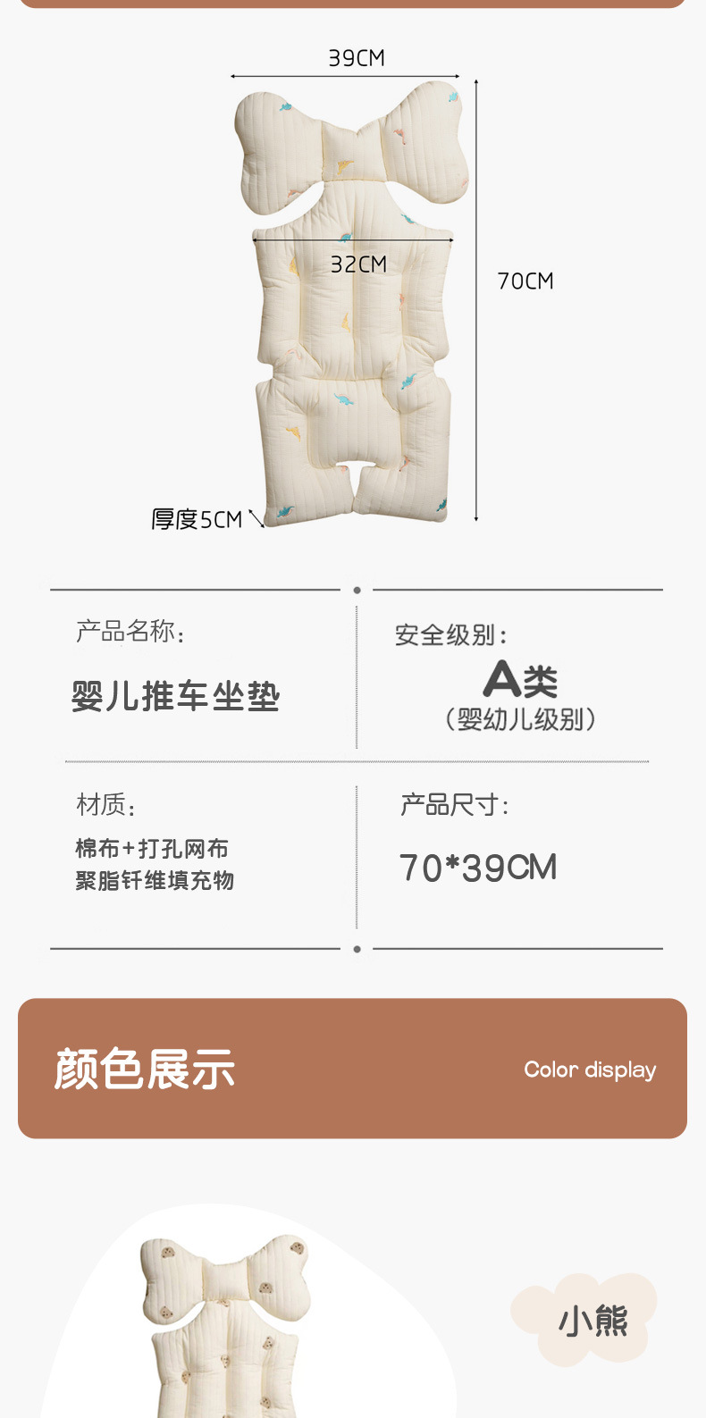 Цвет Bear stroller thick cushion
