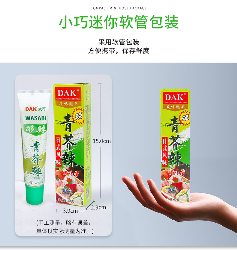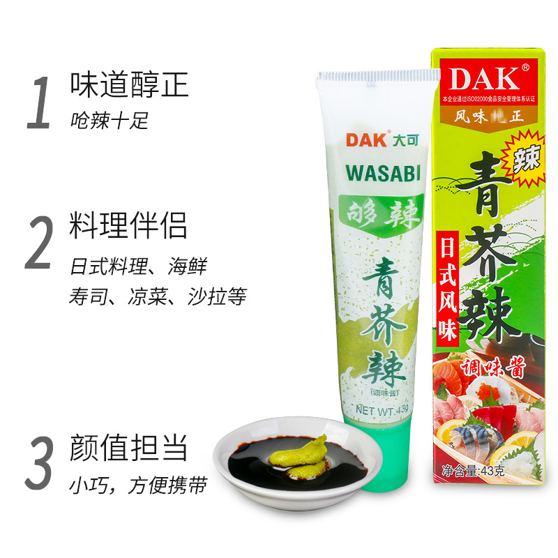 ![]() | dake抱枕靠垫 [green mustard spicy] mustard seasoning sauce 43g (single box) | ¥1.99 / ≈ 24 ₽ | 326 | 5182328704721 | |