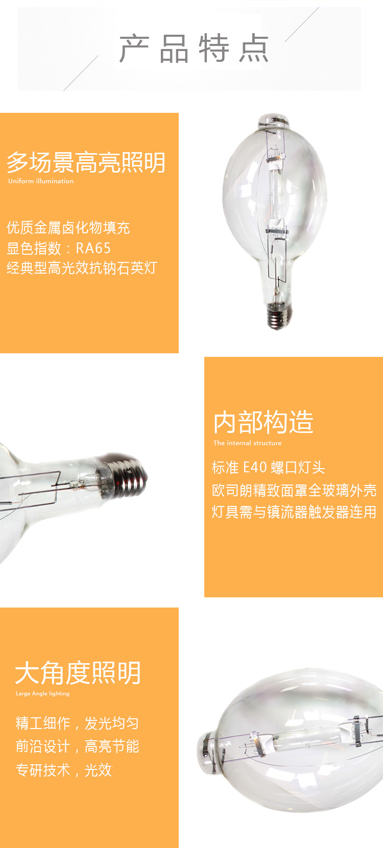 Лампа металлическая галогенная Osram Mi 1000W/U американский стандарт одинарного конца для рыболовных лодок E40 с резьбой прямая трубка высокая напряжение