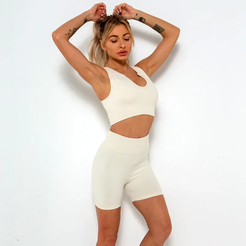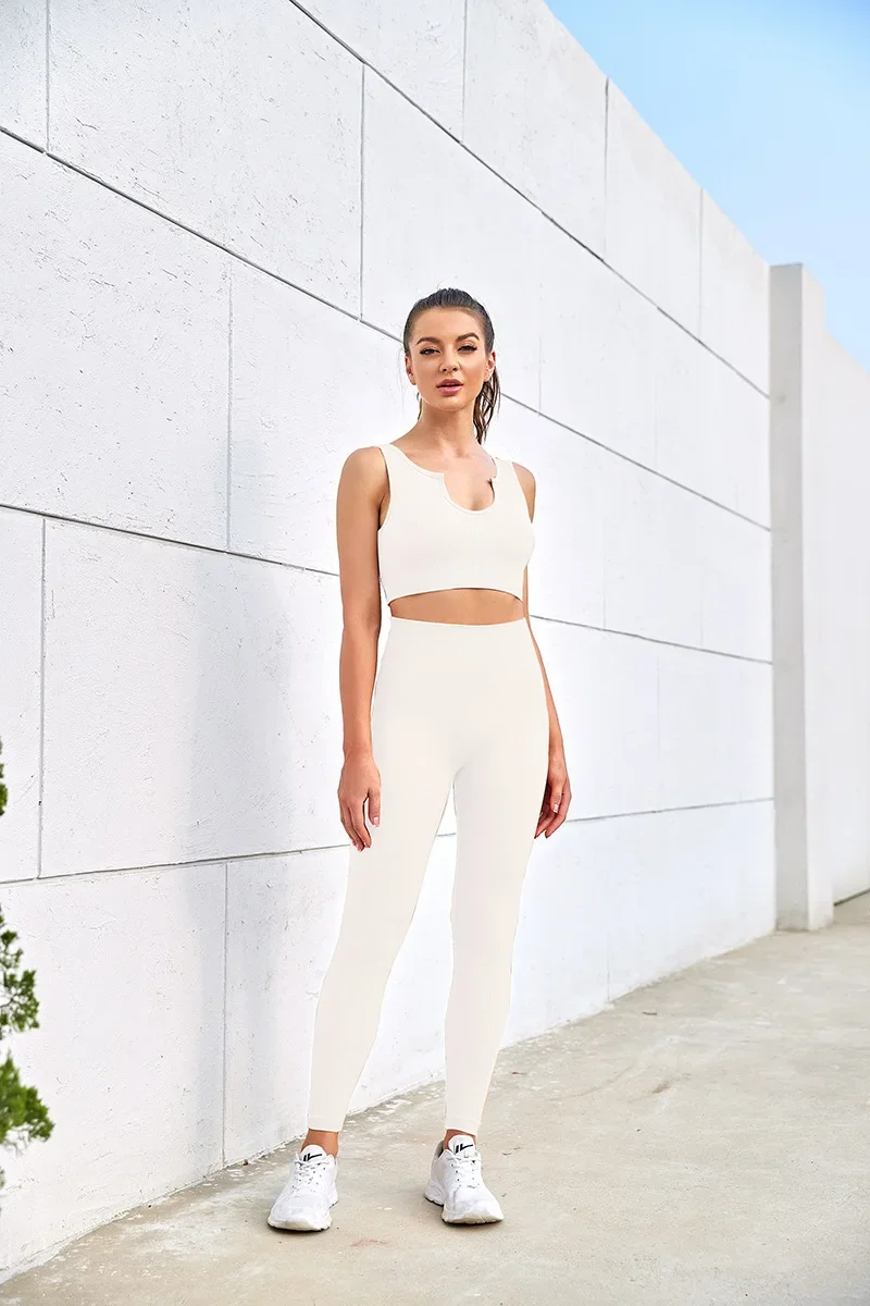 Новый бесшовный влагопоглощающий пот U-образный спина осень и зима высокоэластичный однотонный йога бра фитнес комплект для женщин