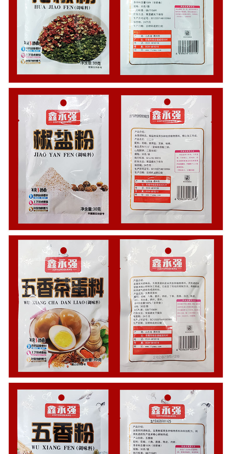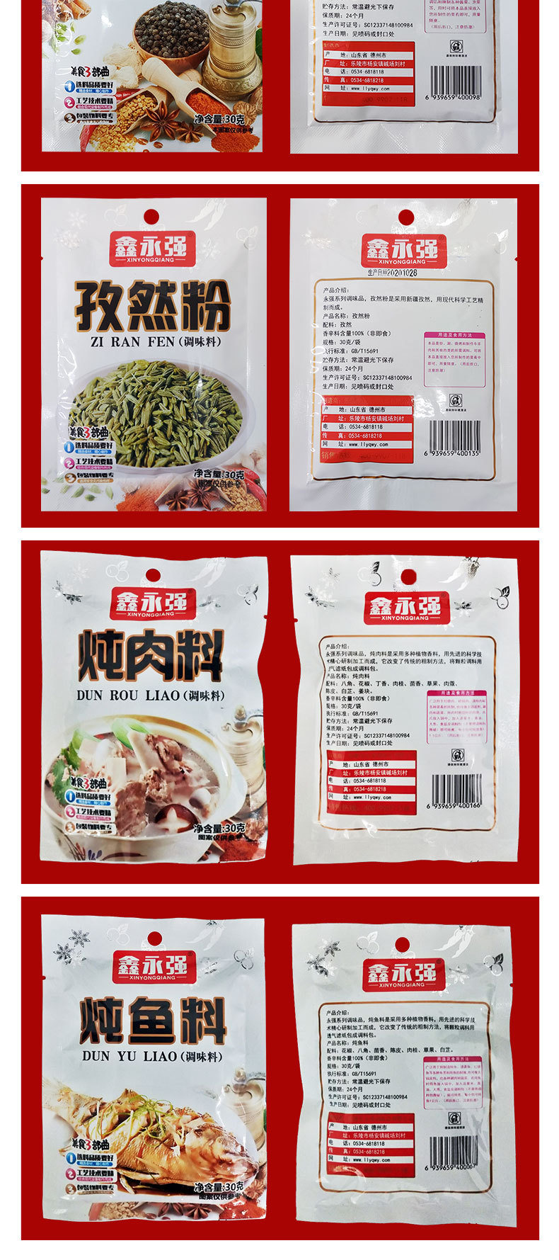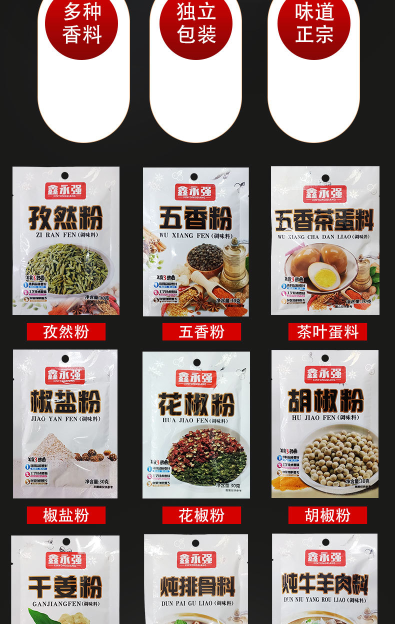 Оптовая упаковка приправы для тушения Xinyongqiang для уличных торговцев и барбекю, включает порошок перца и порошок кумина
