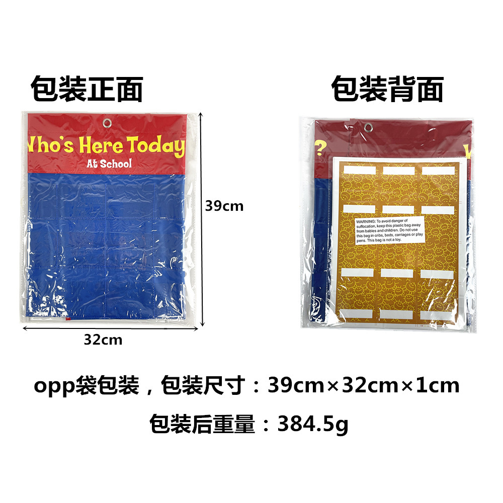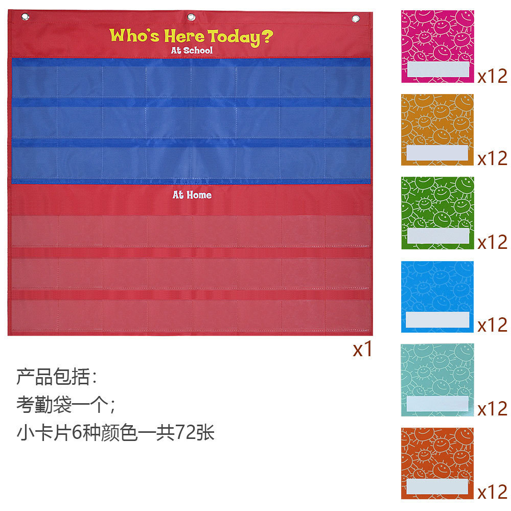 这个简单易用挂袋孩子们享受很多乐趣,并让整个班级参与!我们还准备了72张彩色卡片,孩子们可以把照片贴在片卡上并写上自已名字。孩子们通过每天早上找到他们的图片卡并把它们移到顶部来帮助记录出勤。当该回家的时候,孩子们只需把他们的图片移回底部,就这样循环使用它.我们提供72张彩色卡双面印,正面用完可用背面,不用担用完卡怎么办,可以前往我们的“卡和句子条”类目购买