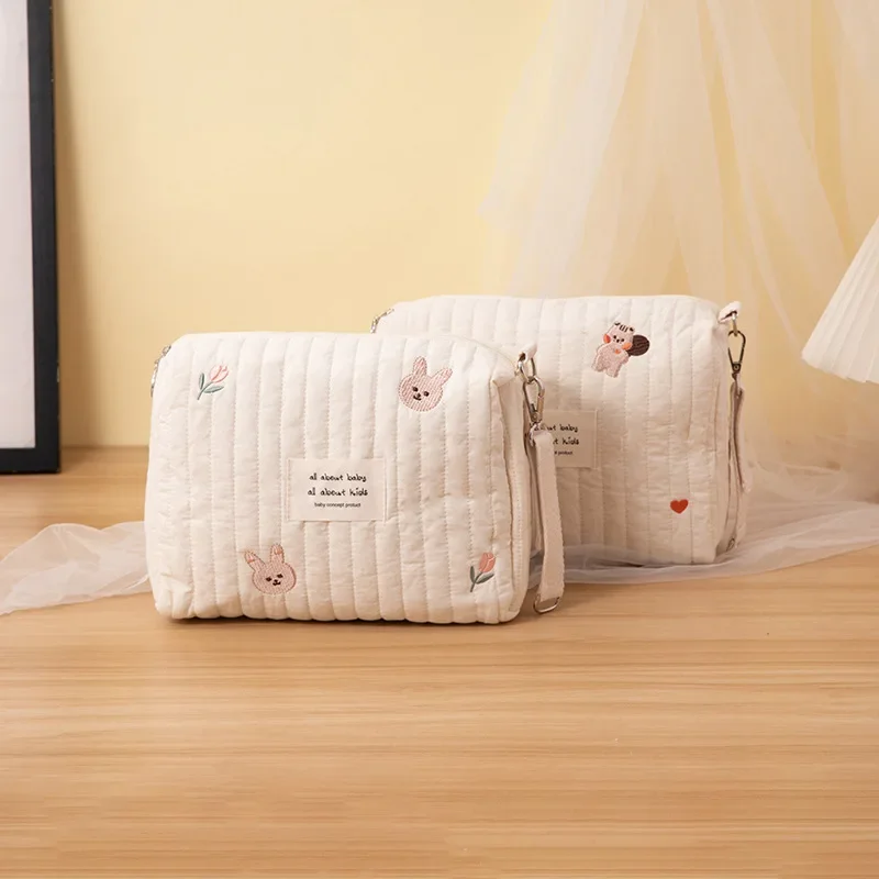 Сумка для коляски с вышивкой и молнией, сумка для подгузников и бутылочек, органайзер для матери и ребенка