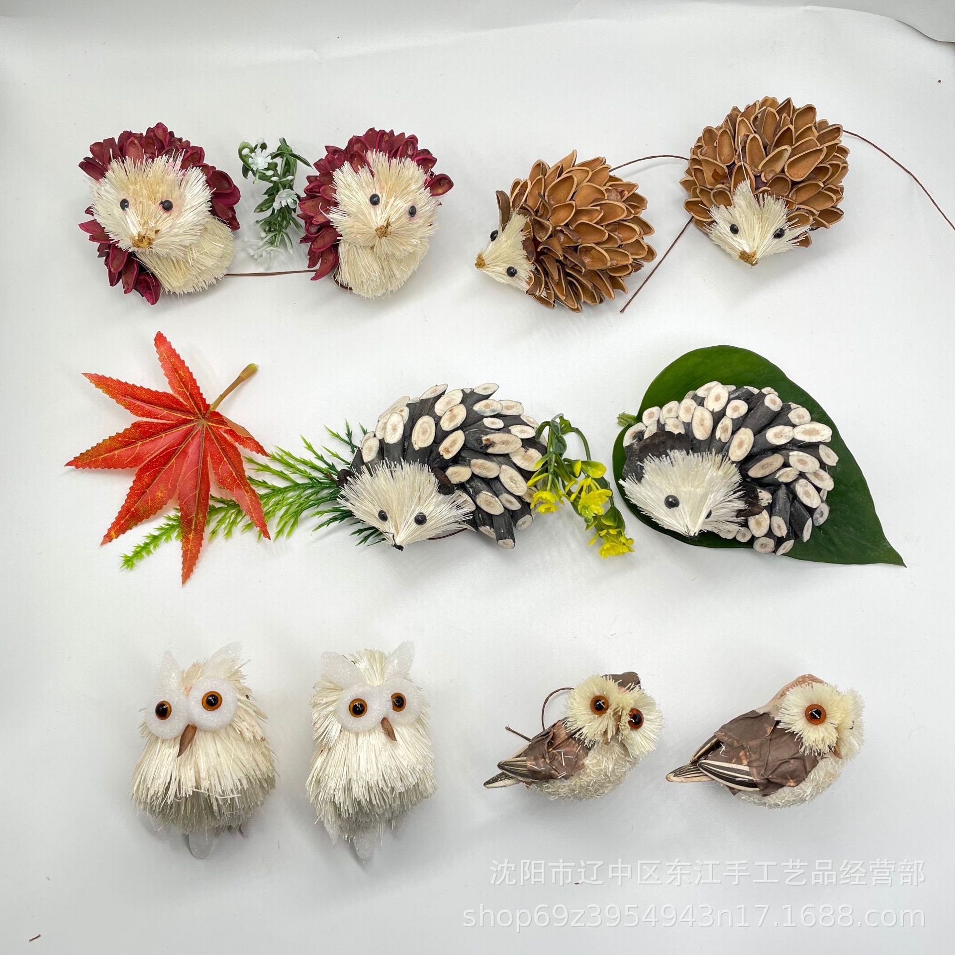 Оформление в виде ёжика и совы из соломы, материалы для DIY, декор для детского сада