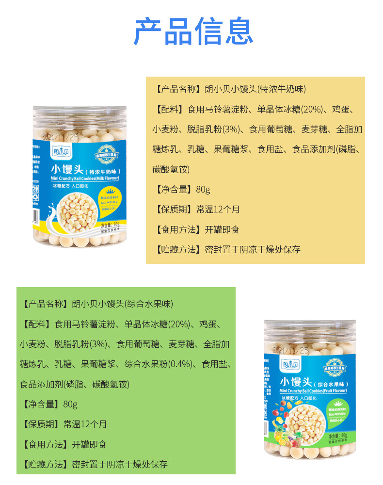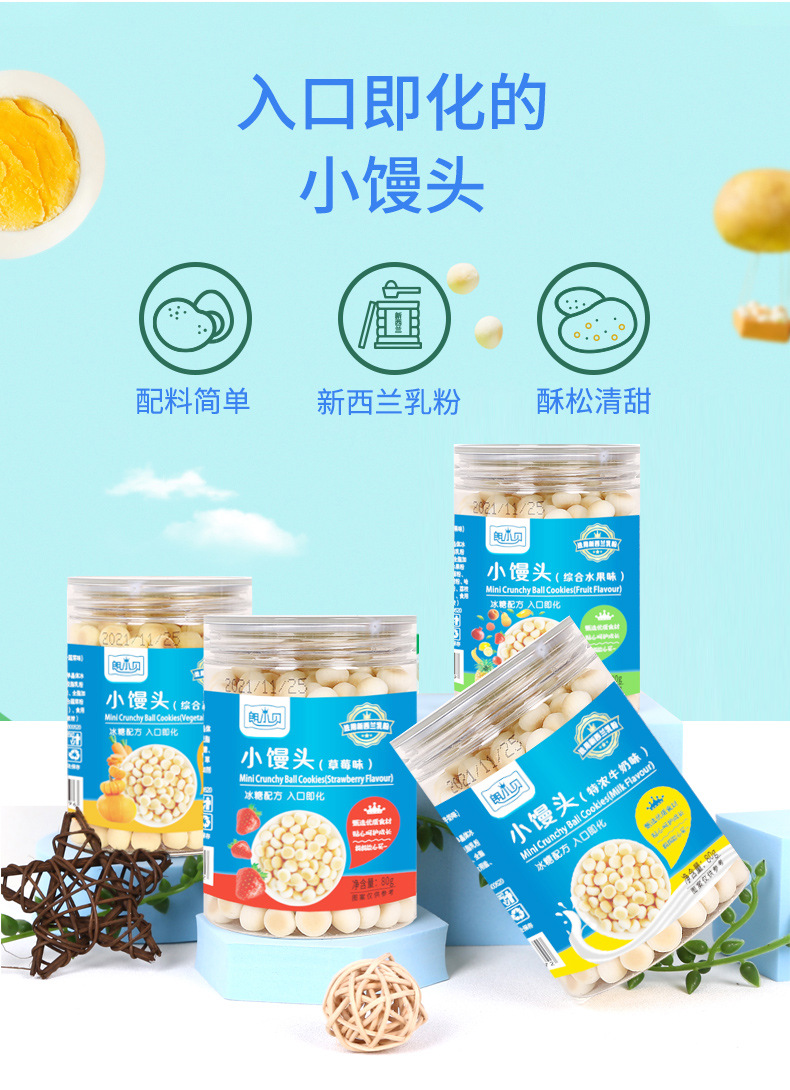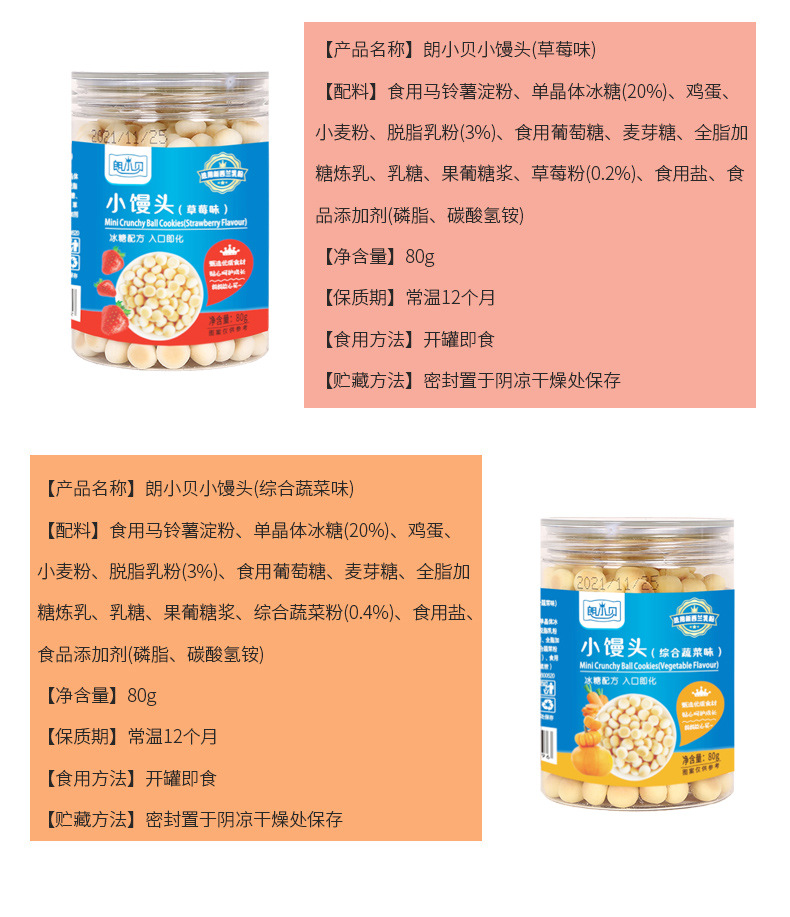Ланг Сяобэй Маленькие паровые булочки Закуска Молоко Фрукты Овощи Вкус клубники Молочные бобы Маленькие паровые булочки 80г Консервированная добавка к пище