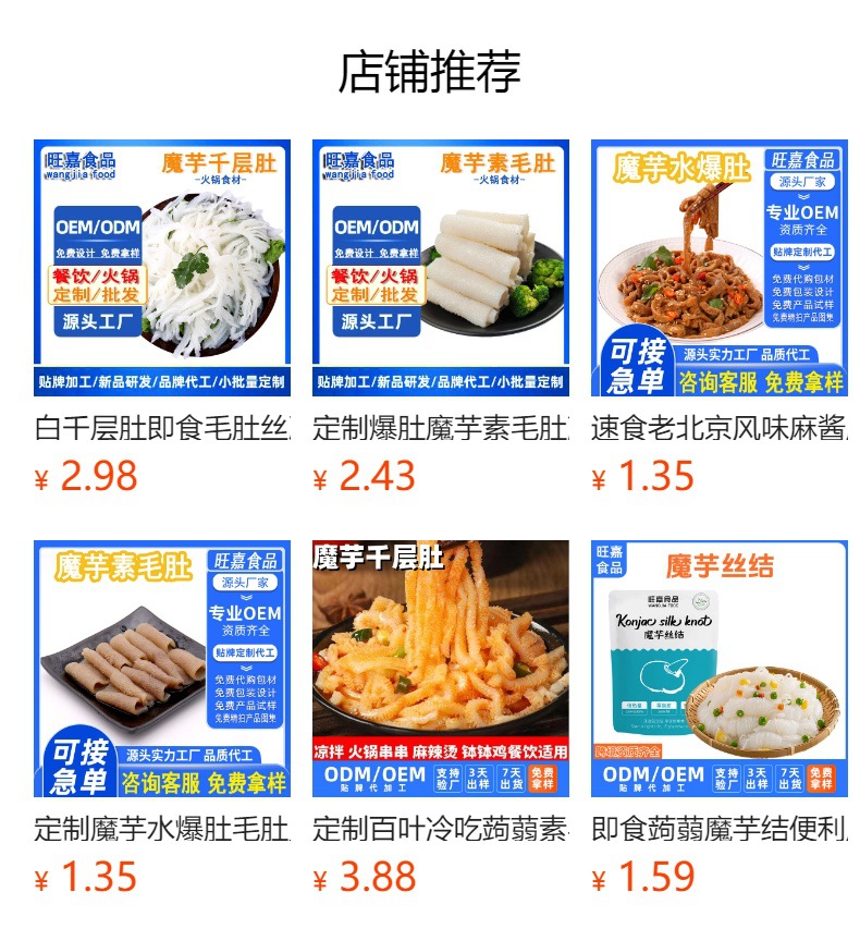 (我们是20年魔芋食品生产厂家,拥有自己的研发团队,提供一件代发,贴牌代工,配方定制,包装设计,分销批发,品牌加盟,产品研发,OEM/ODM等服务;欢迎来厂参观!在线咨询即可分配专属客服哦)