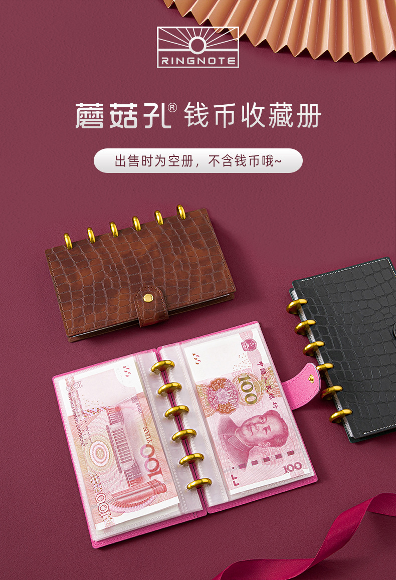 RINGNOTE утолщенный альбом с прозрачными внутренними карманами для хранения банкнот и памятных банкнот, альбом для монет с грибными отверстиями