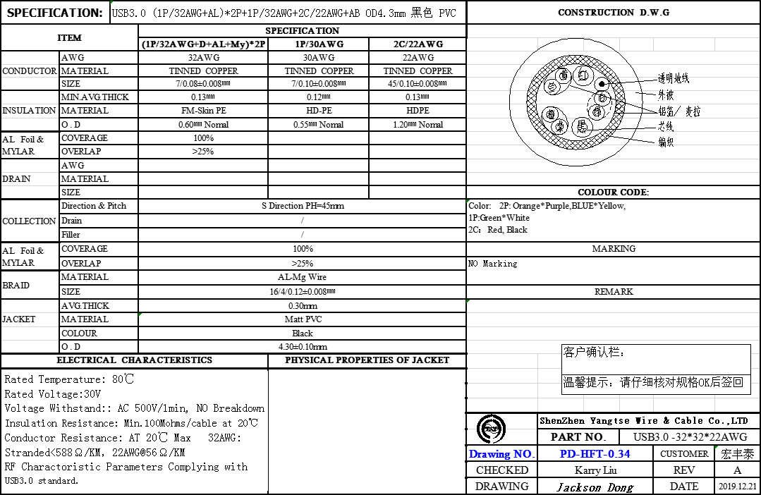 2:镀锡铜线芯,标准USB 3.0 Type-C线 最大支持5V 3A电流 传输速度5Gbps。