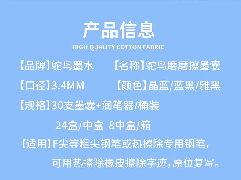 📦 | Hot erasable - crystal blue (30 ink bags + pen moisturizer/barrel) | 720шт: ¥0.17, 5760шт: ¥0.16 | 228039 | 5597970357972 | |