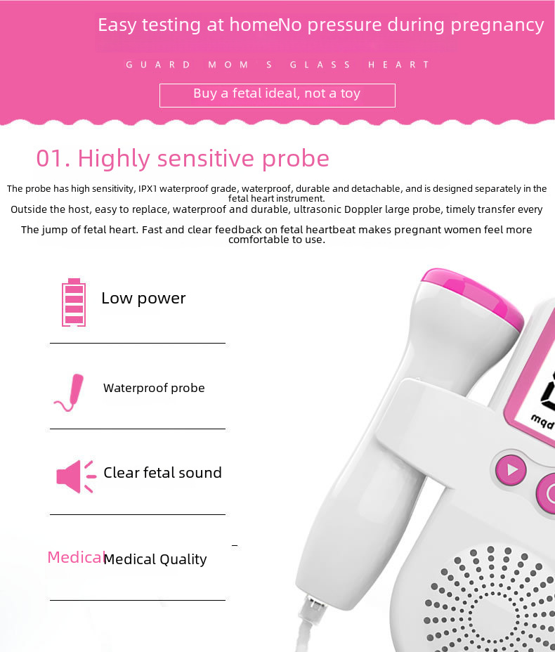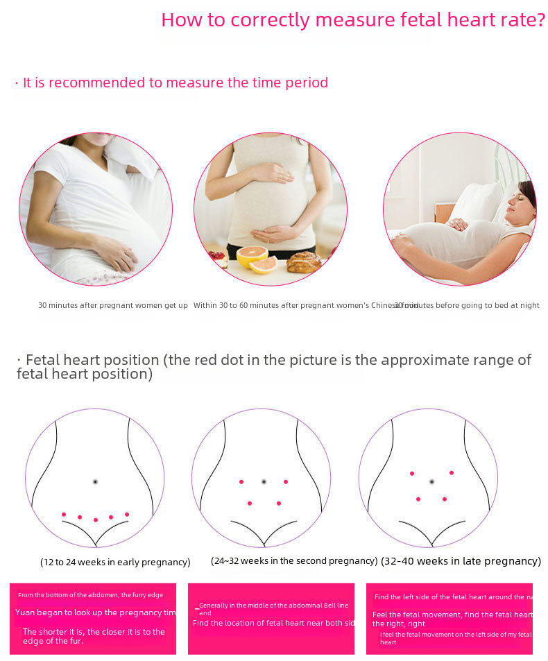 - Home Use Convenience:This fetal heart rate monitor is designed for home use, providing expectant parents with peace of mind and convenience by allowing them to monitor their baby's heartbeat from the comfort of their own home.