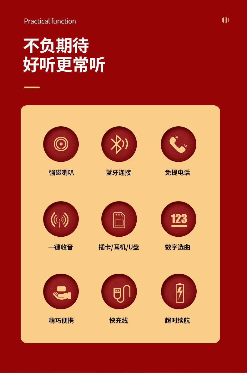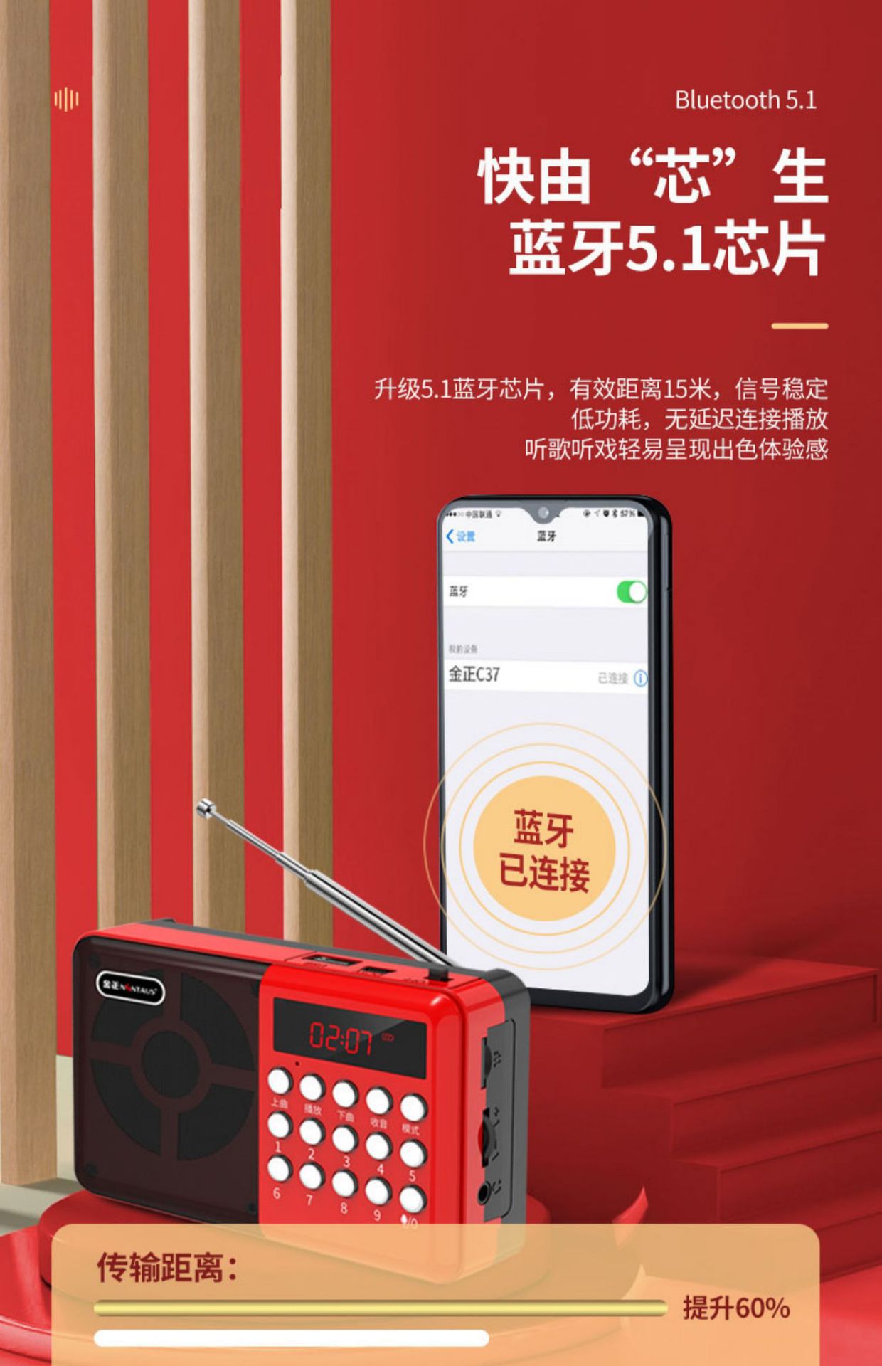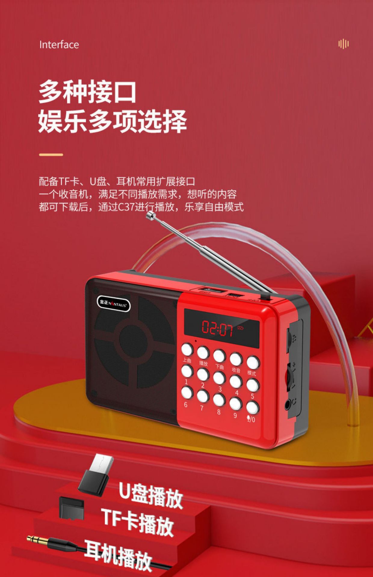 Радио Jin Zheng C37 MP3 для пожилых, мини стерео колонка, портативный музыкальный плеер, быстрая зарядка