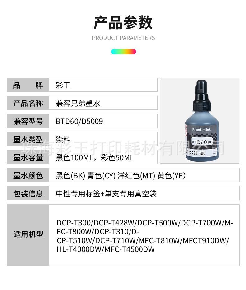 Совместимые чернила для принтера Brother D60/D5000, черный и цветной