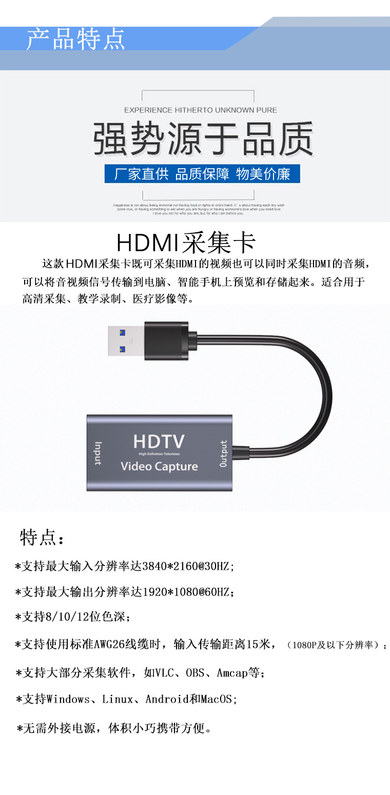HDMI HD видеозахватная карта HDMI к USB 4K игра прямой видеозапись выход 1080p @ 60Hz