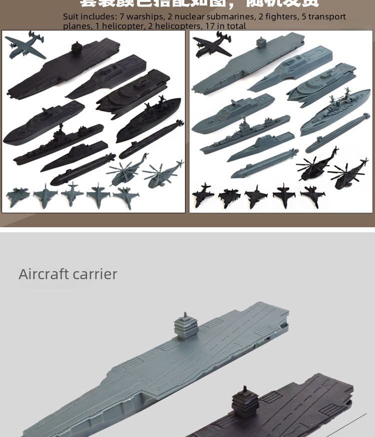 - Aircraft Carrier Model Toy:This exciting set features an aircraft carrier model, perfect for young enthusiasts to explore and play with. It's a great learning tool that encourages creativity and imagination.