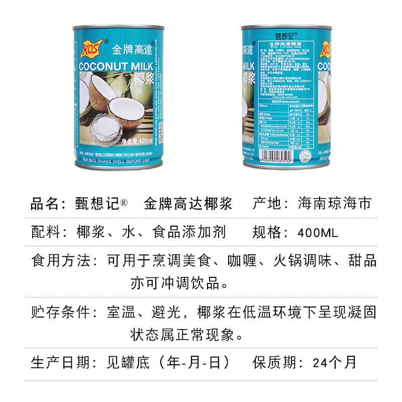 Золотая медаль Гауда кокосовое молоко 400мл Гауда Чжэнь Сянцзи консервированное концентрированное кокосовое молоко золотая медаль кокосовый сок сагу ингредиенты