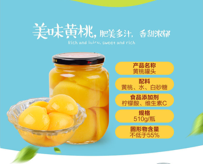 Консервированные желтые персики 510г большая стеклянная банка готовые к употреблению свежие консервированные фрукты коммерческая упаковка оптовая доставка