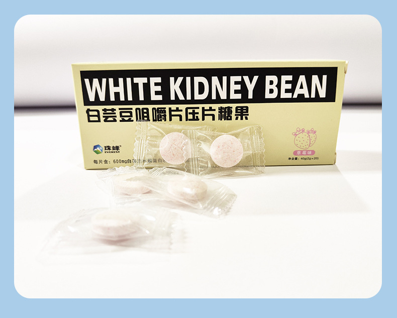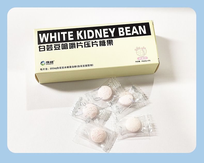 Жевательные таблетки из белой фасоли, клубничный и йогуртовый вкус, индивидуальная упаковка, 20 таблеток, прямая поставка с завода, сжатые конфеты