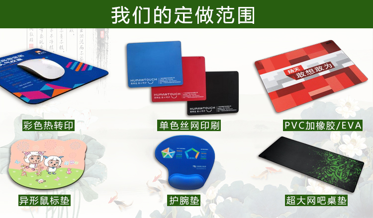 Тип Keyboard pad, Gaming mouse pad, Ordinary mouse pad, Wrist mouse pad, Advertising mouse pad