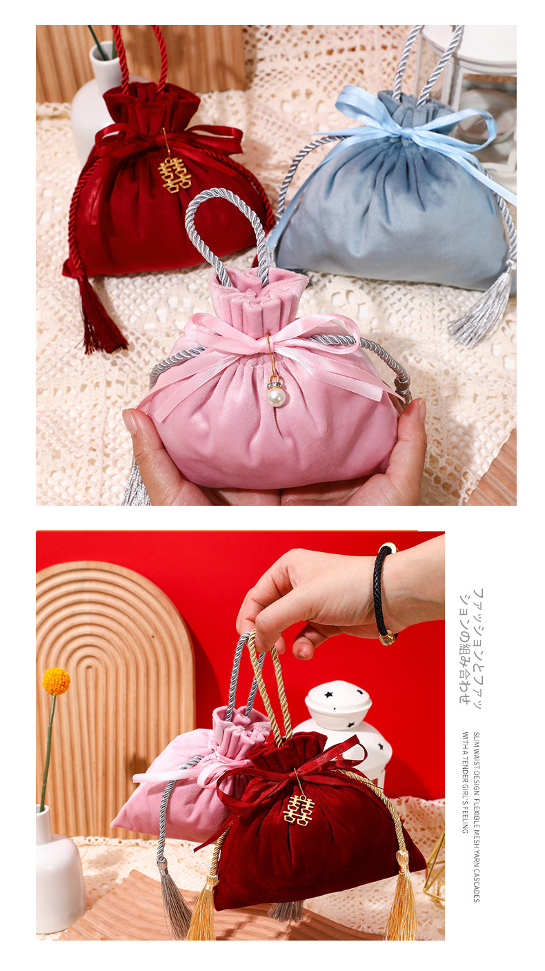 品名:新款酒红流苏喜糖袋 福气袋 爱情锦囊