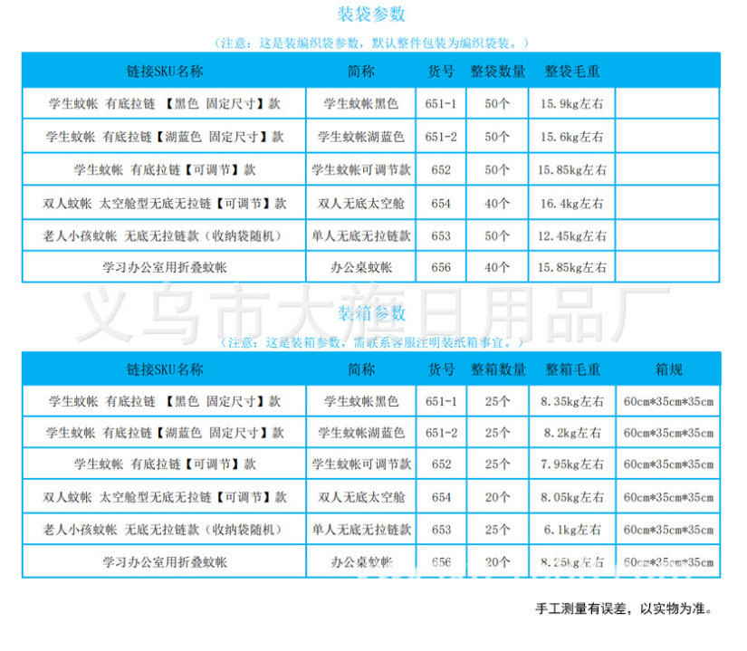 注意:装袋为编织袋参数,默认整件包装为装编织袋,装箱为装纸箱参数,需联系客服注明装纸箱事宜。箱规:60*35*35cm