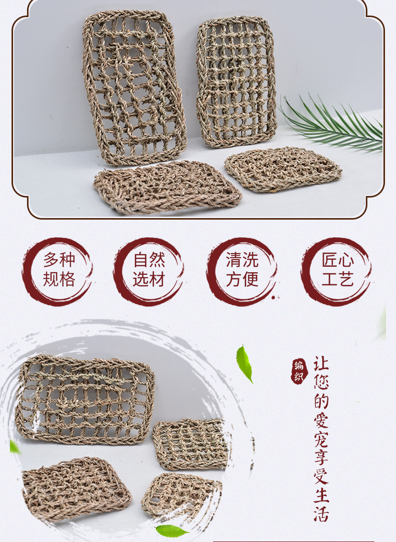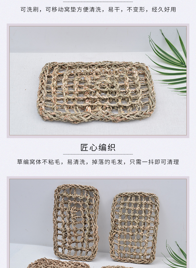 Прямоугольный Плетеный Коврик Из Морских Трав, Простой Коврик Для Ползания Животных, Многофункциональный Соломенный Коврик, Игрушка Для Кролика И Чинчиллы