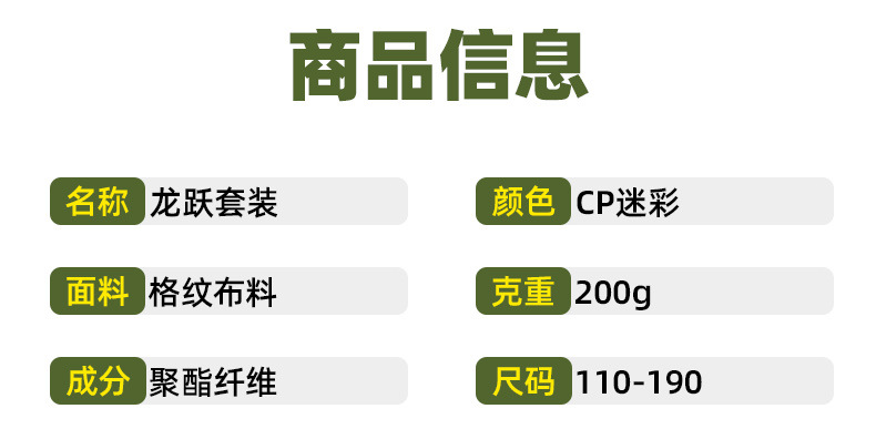 📦 | [Long Yue suit] Green CP Camouflage | 150 | ¥62.0 / ≈ 747 ₽ | 9784 | 5980468386742 | |