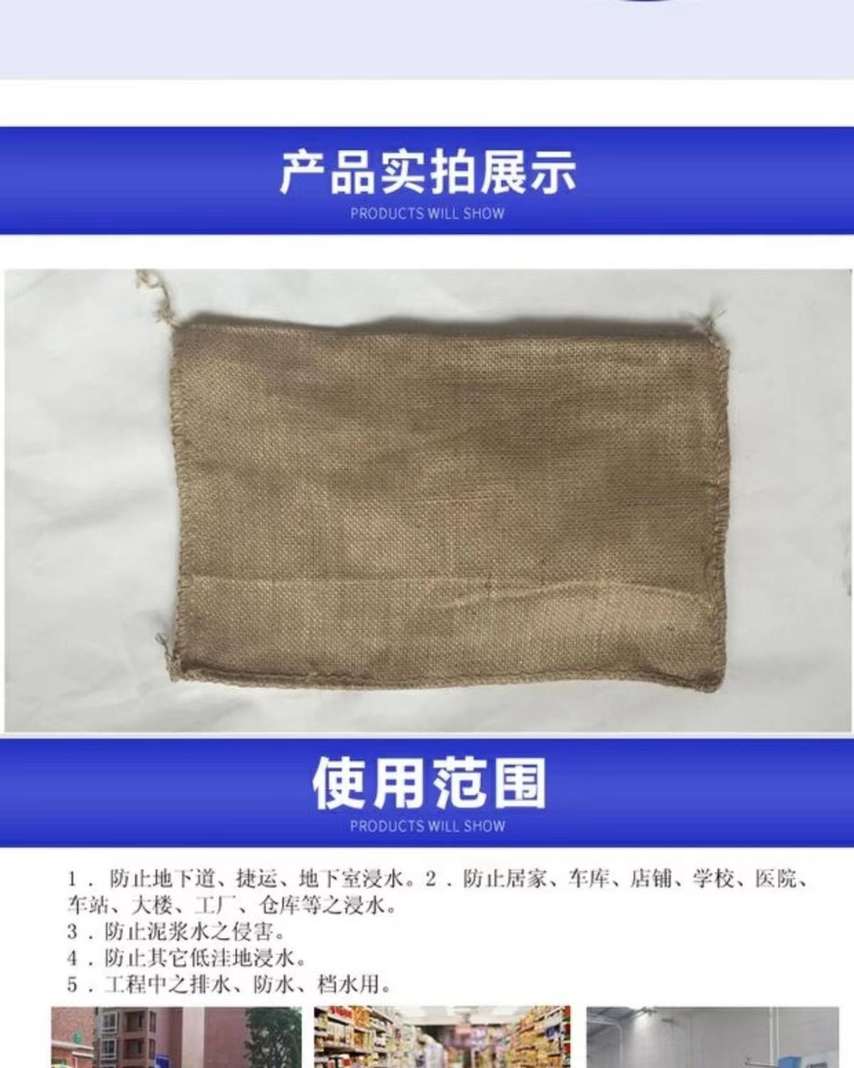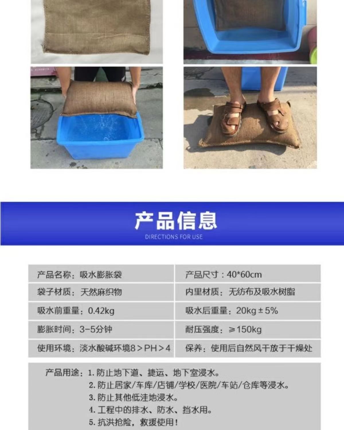 Впитывающая расширяющаяся сумка, джутовая, для защиты от наводнений, 40*60 см