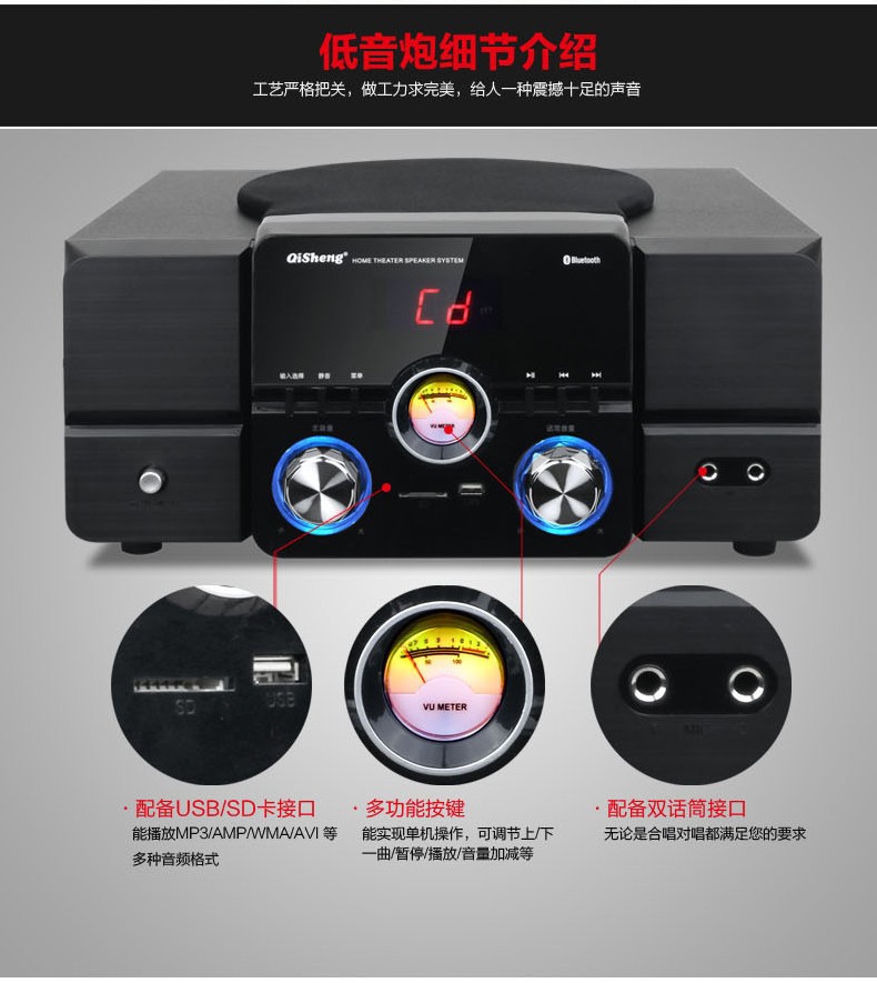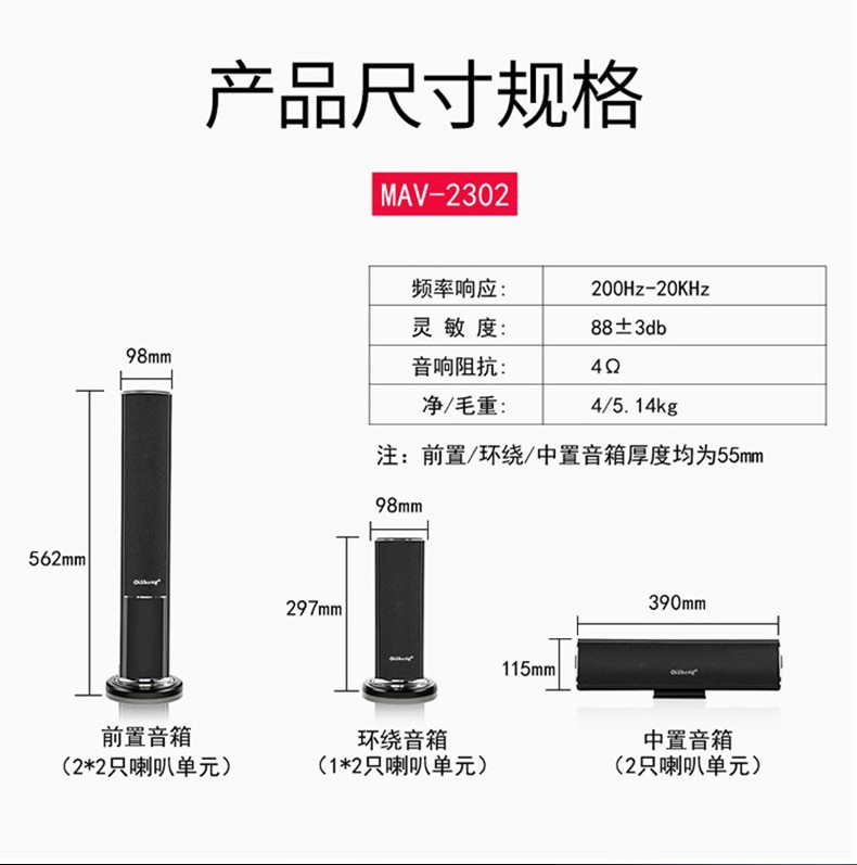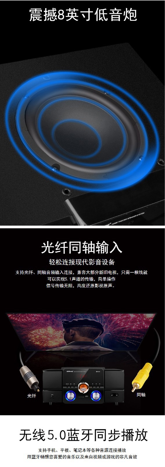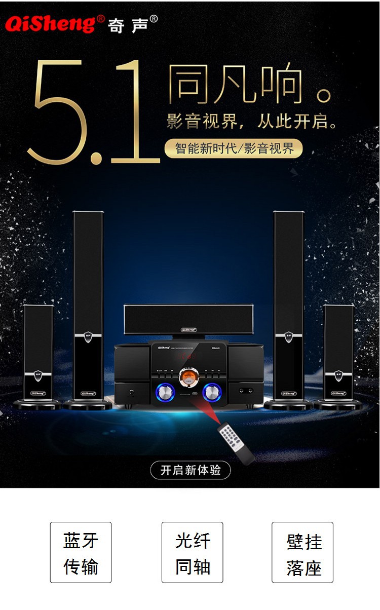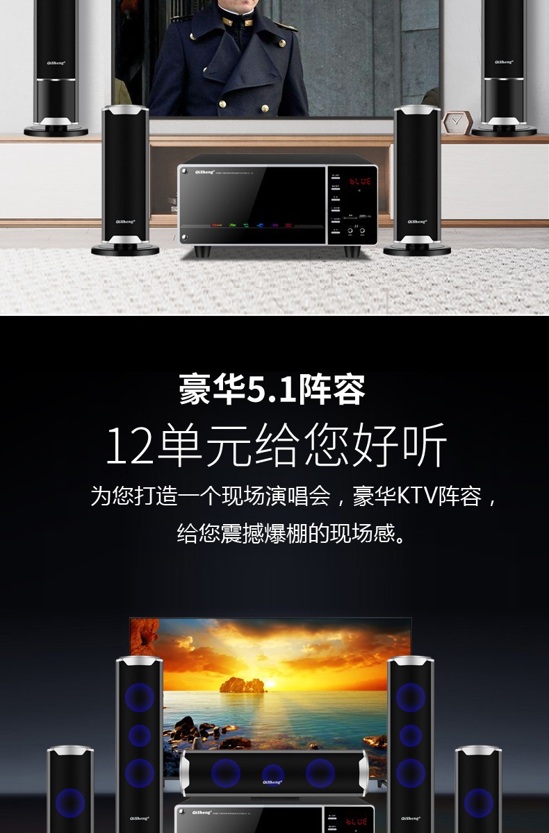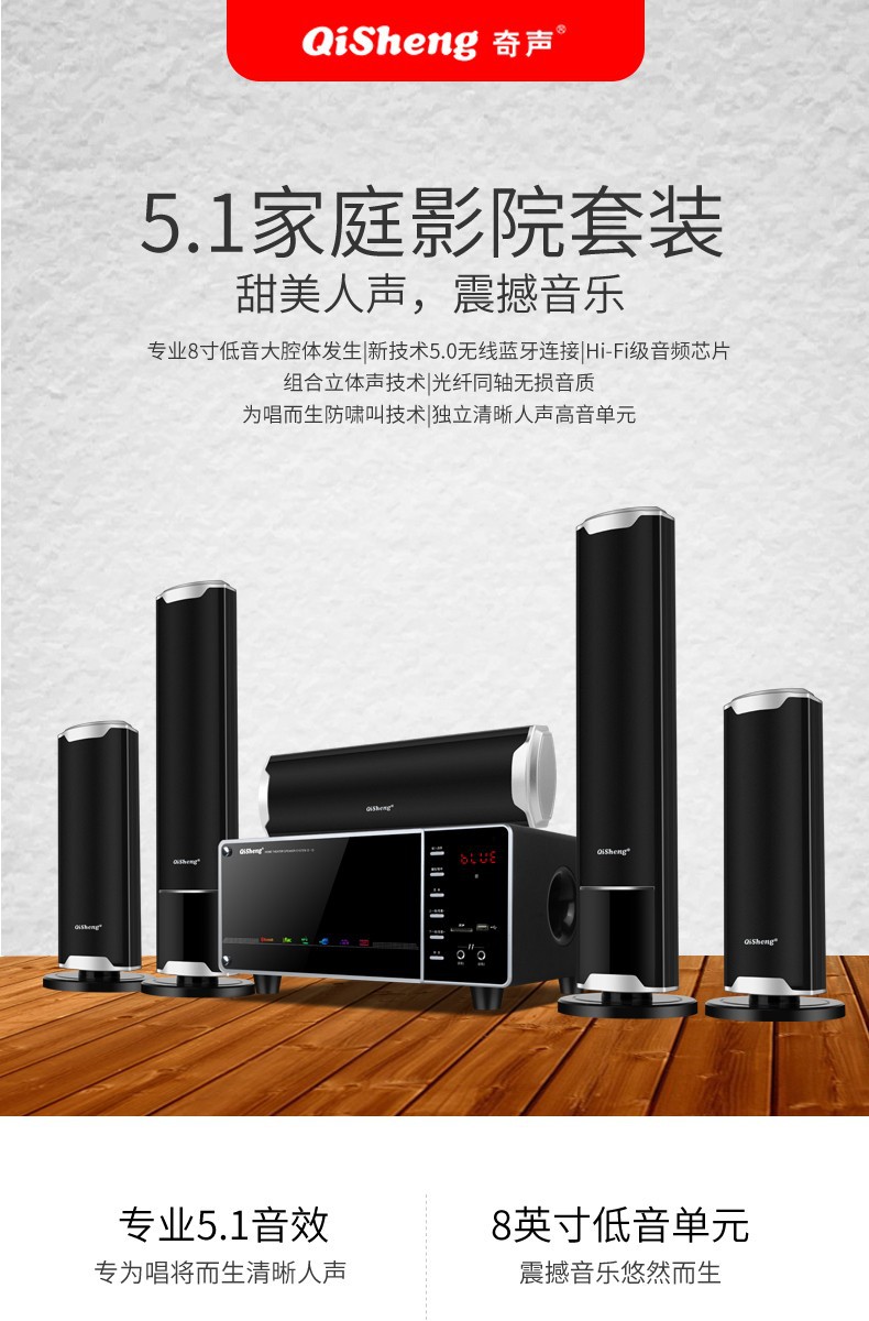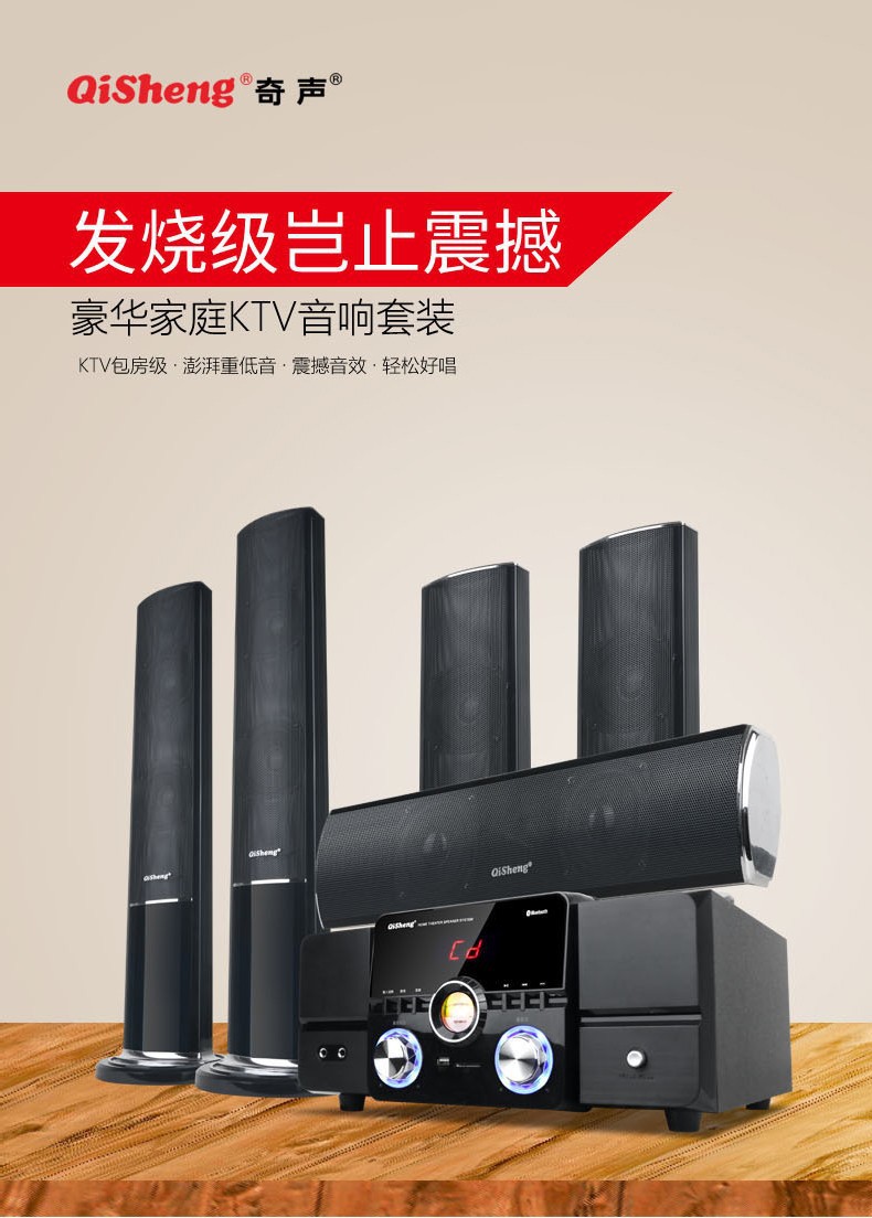 Аудиосистема Qisheng Home Theater 5.1 комплект с усилителем, сабвуфером, оптическим и коаксиальным входом для дома и KTV